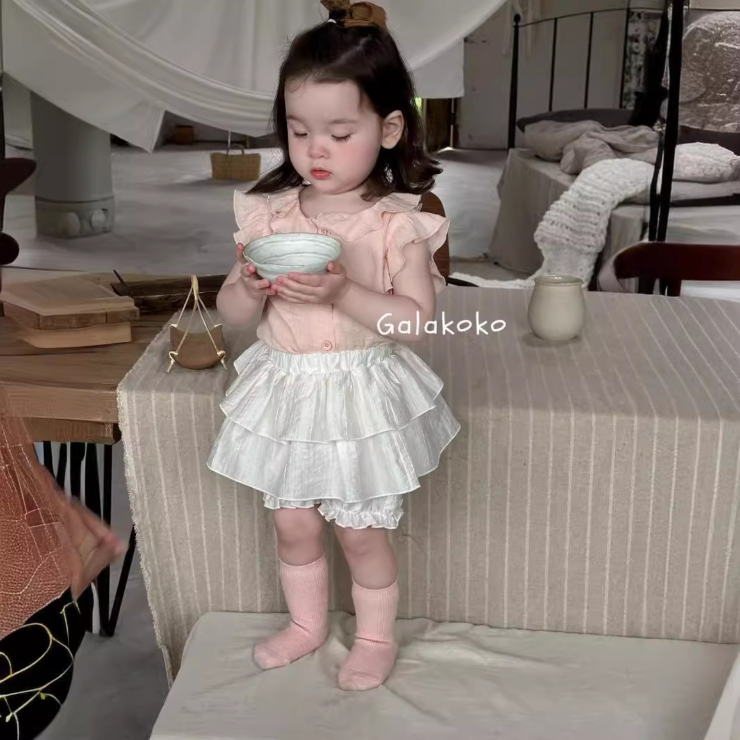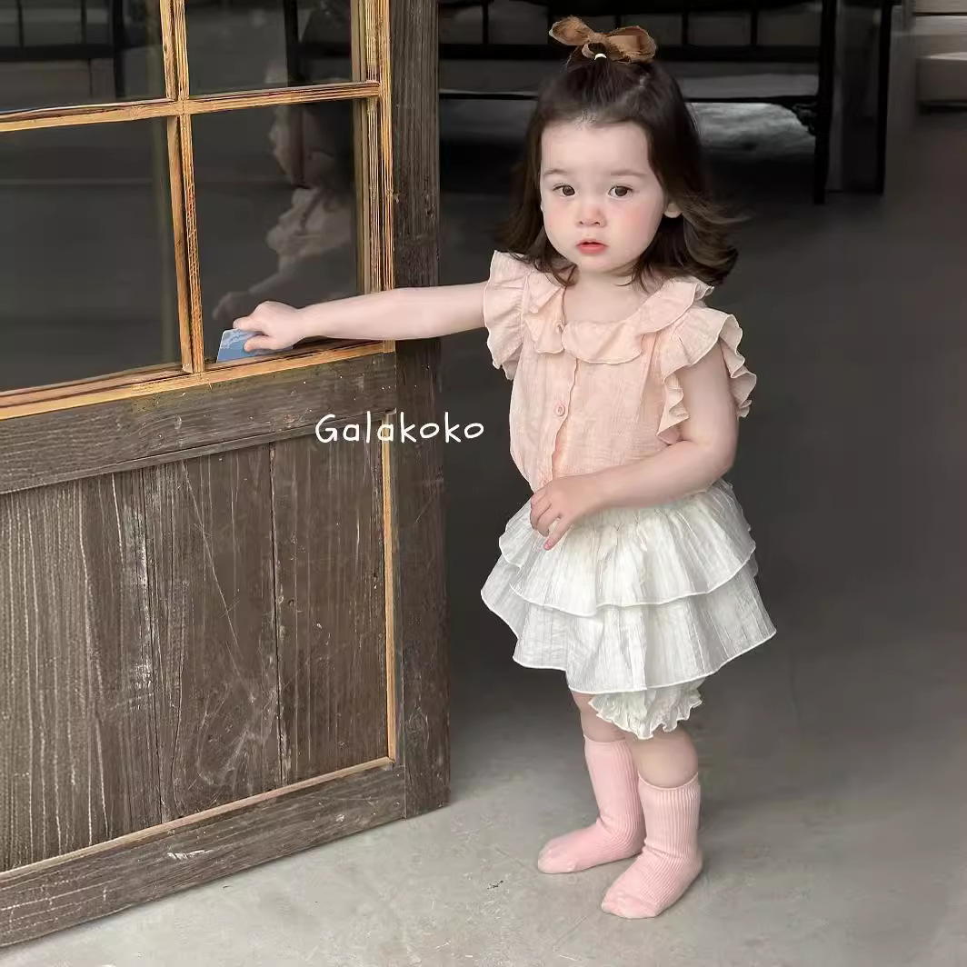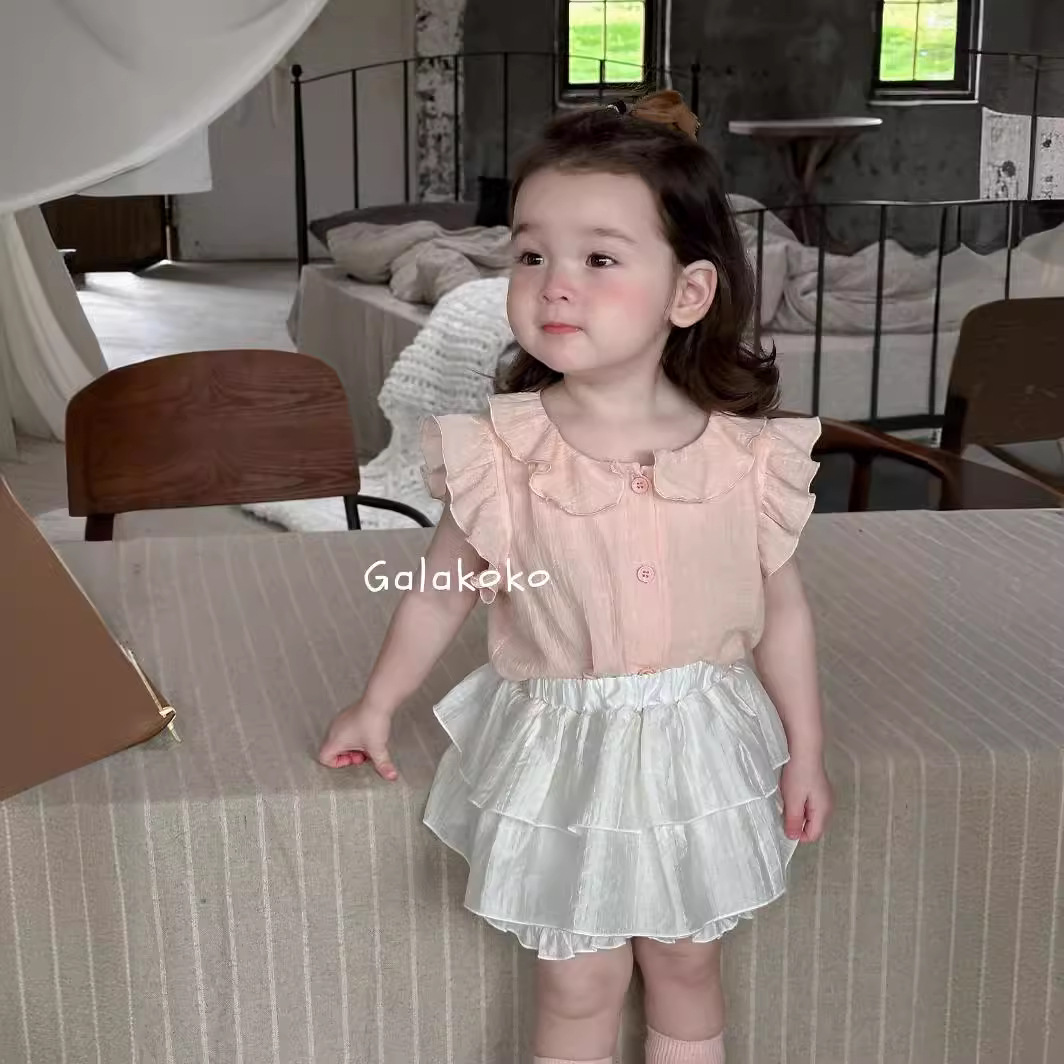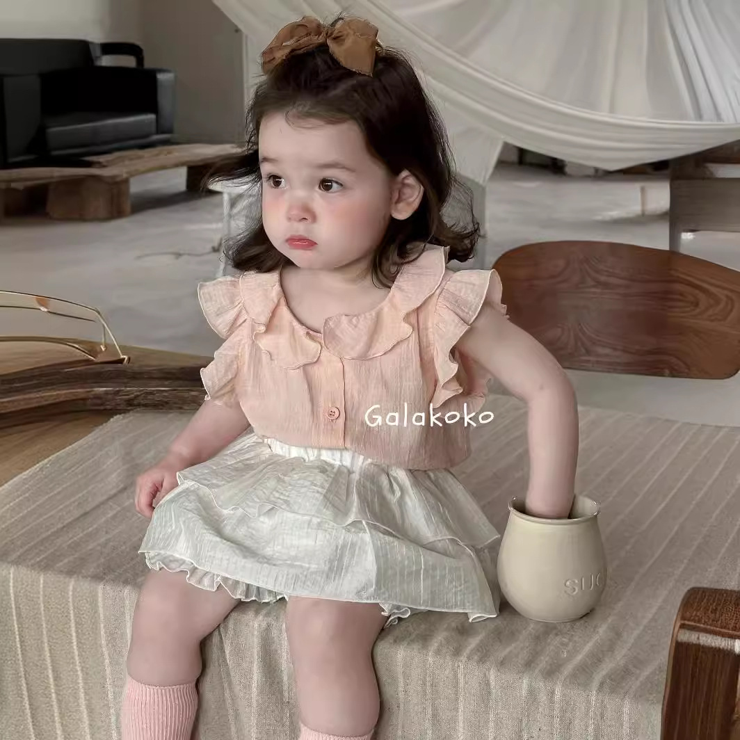Galakoko Baby Solid Color Shirt Skirt Casual Travel Wear Foreign-style Kindergarten Daily Wear