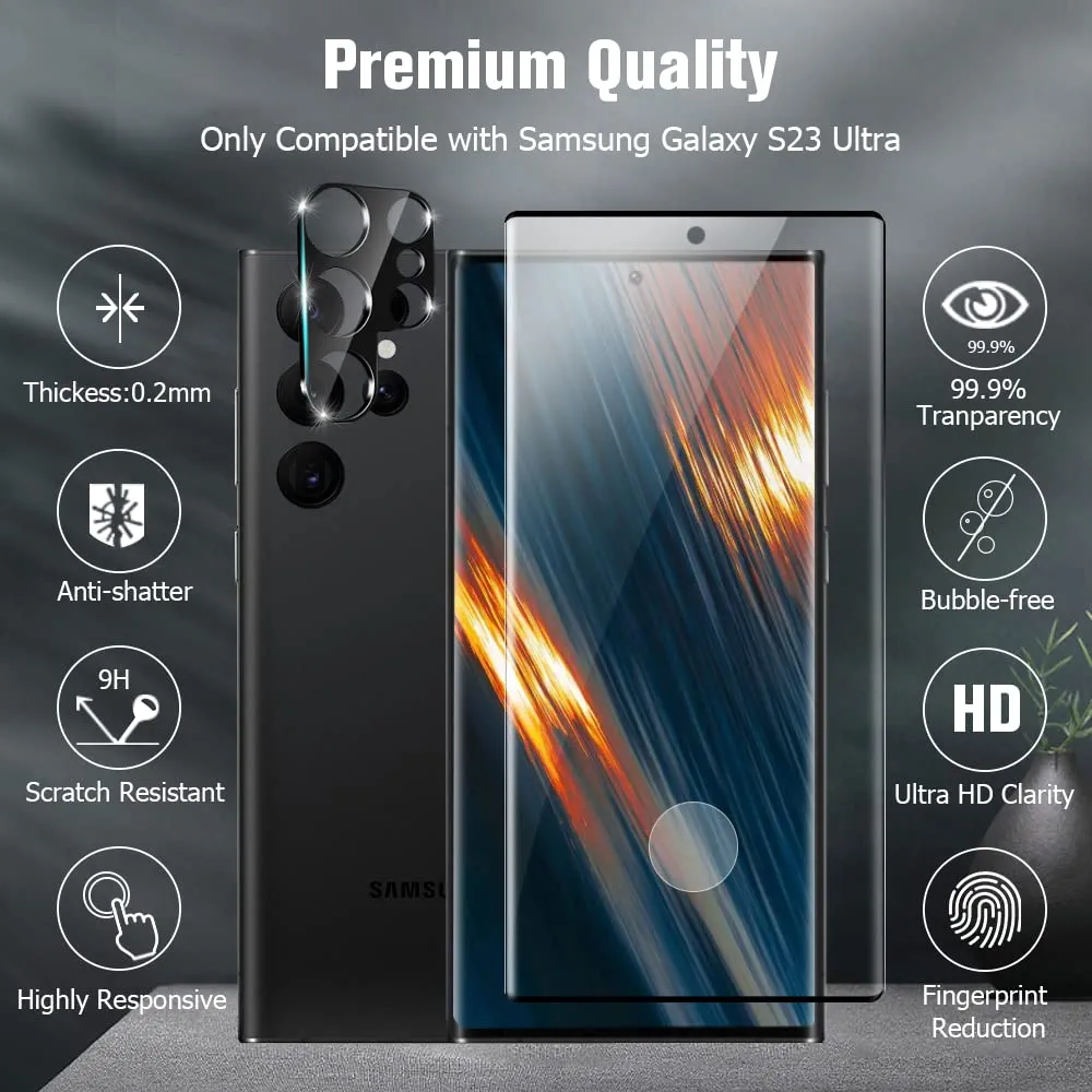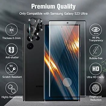 | nameOriginal | [2+2 Pack]Galaxy S23 Ultra 5G Screen Protector+Camera Lens Film,9H Tempered Glass,Ultrasonic Fingerprint Compatible, HD Clear,3D Curved Glass Screen Protector For Samsung Galaxy S23 Ultra (6.8") |