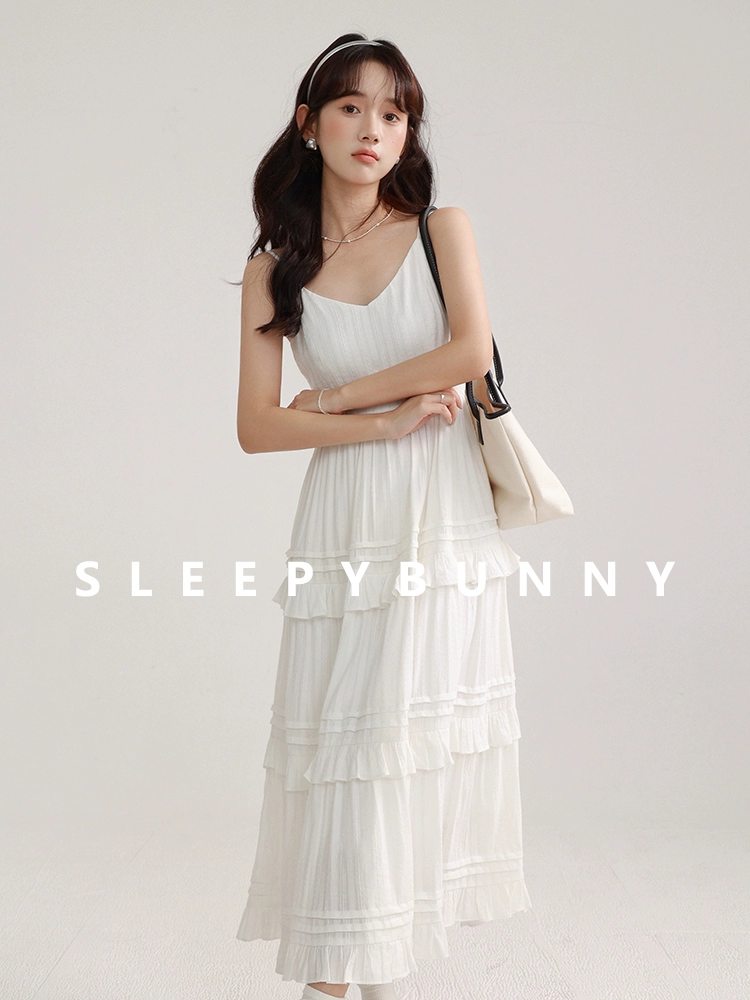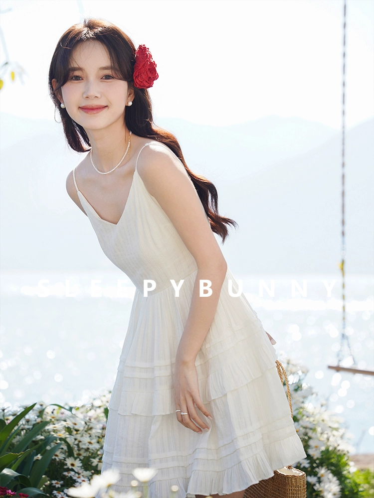 | nameOriginal | Galaxy white V-neck vacation style short suspender skirt |