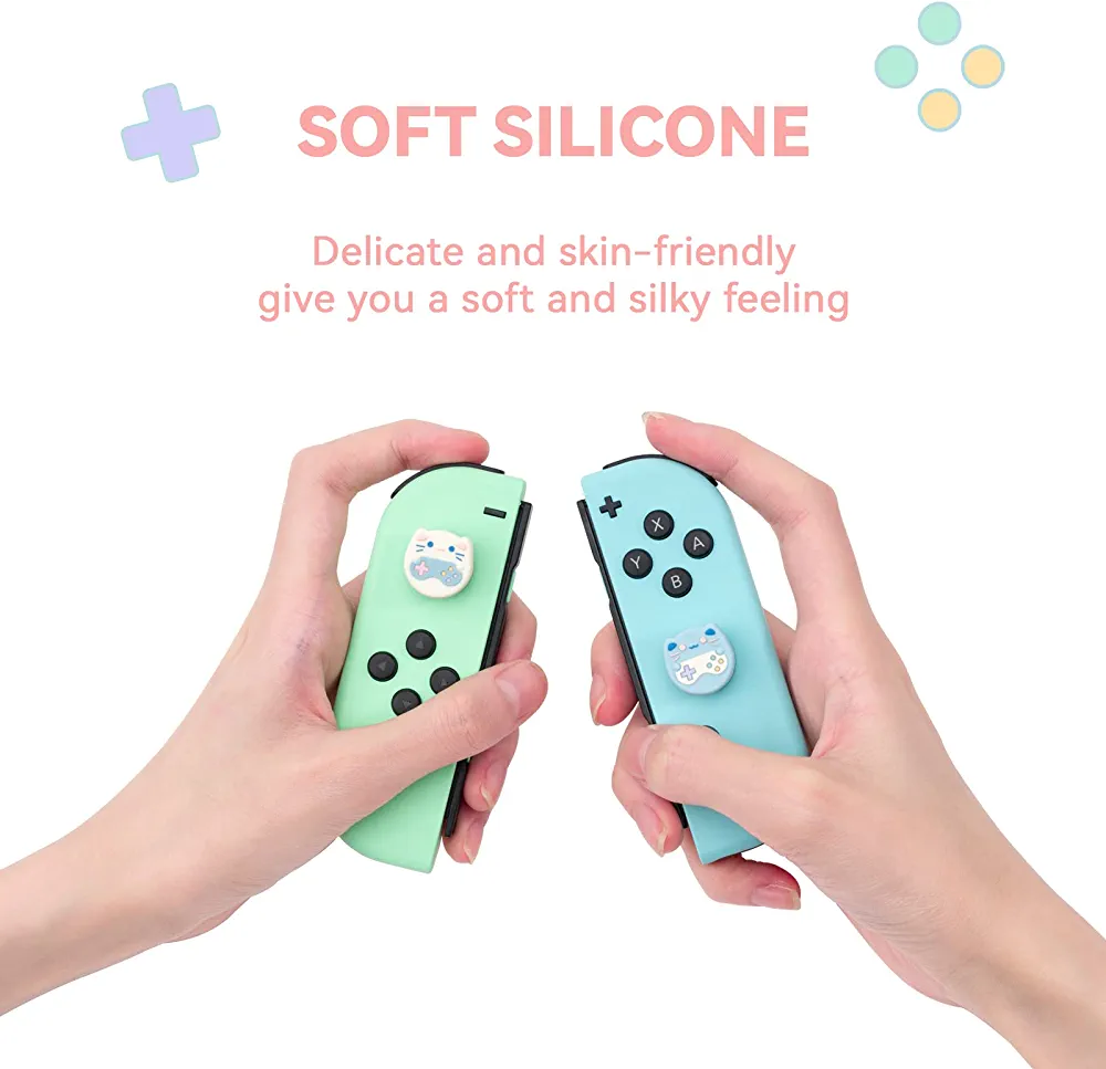 Introducing the GeekShare Cute Animal Theme Thumb Grip Caps, the perfect accessory for your Nintendo Switch, OLED, or Switch Lite gaming console. These soft silicone joystick covers come in a set of 4 and feature an adorable Game Cat design that will add a touch of fun to your gaming experience.