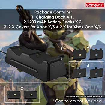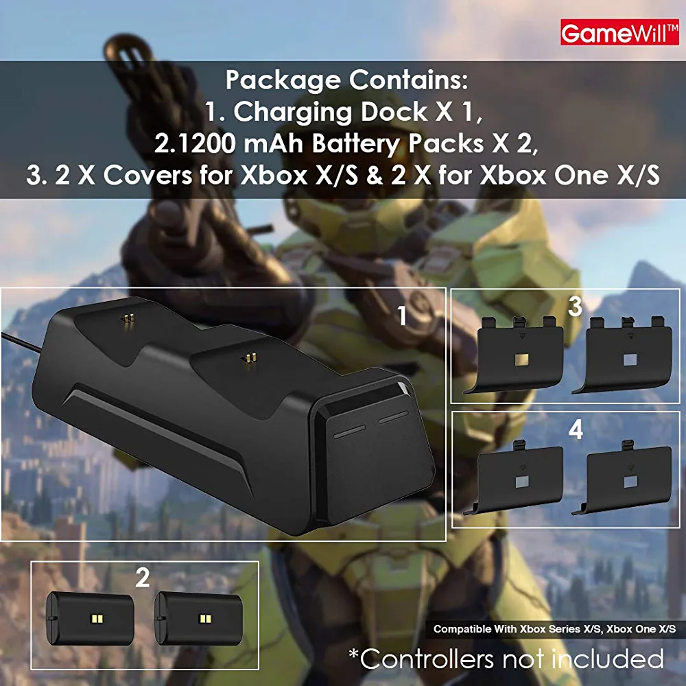| nameOriginal | GameWill Dual Charging Dock with 2 x Rechargeable Battery Packs [EXTRA POWER 1200 mAh] for Xbox Series X and Series S (also compatible with Xbox One X/S) – Black |