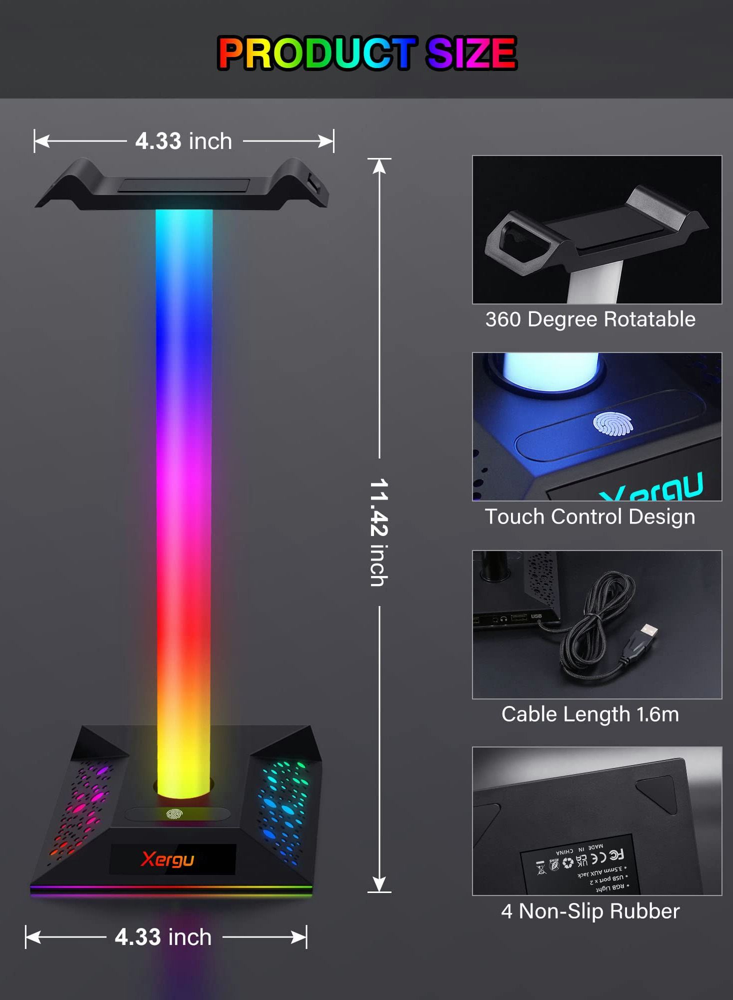 Introducing the RGB Gaming Headphone Stand – the ultimate accessory for gamers and audiophiles alike. This sleek and stylish headset stand not only keeps your headphones organized and within reach, but also adds a touch of flair to your gaming setup with its customizable RGB lighting.