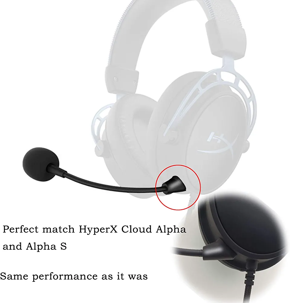 Gaming headset mic replacement for Kingston HyperX Cloud Alpha S/Alpha with noise cancelling and detachable 3.5mm boom mic. Includes foam cover.