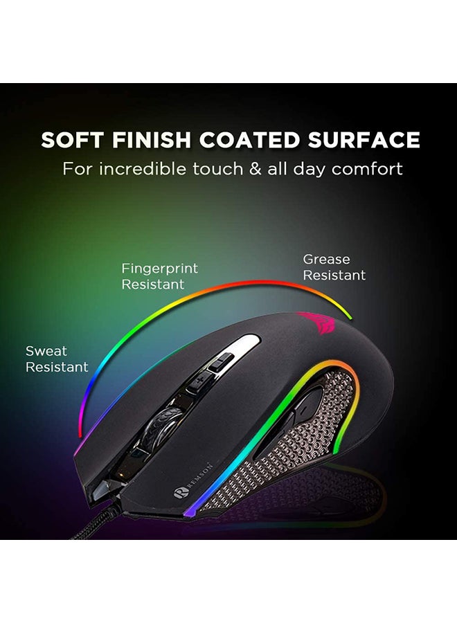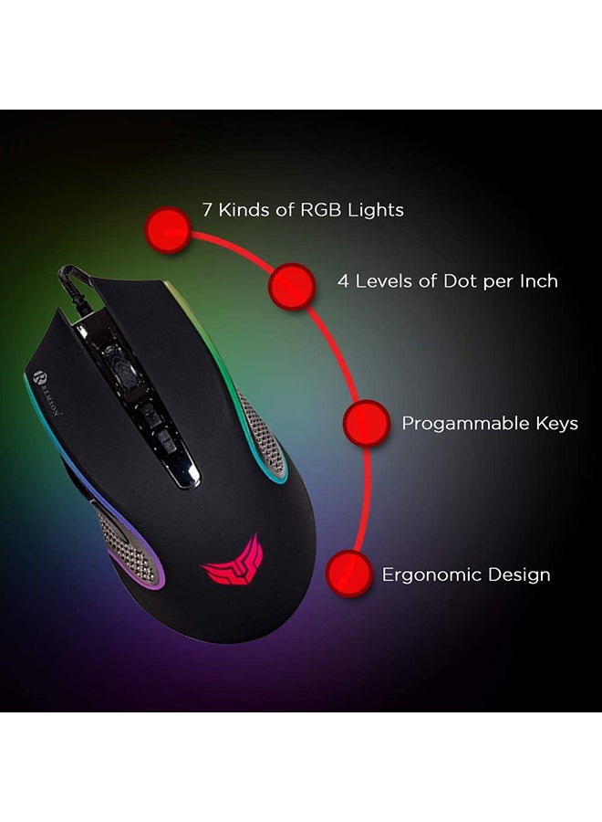 This bundle includes a keyboard, mouse, gaming headset, and mouse pad. The color scheme is black and red, and the model name is RM-S400 with the model number RM-S400.