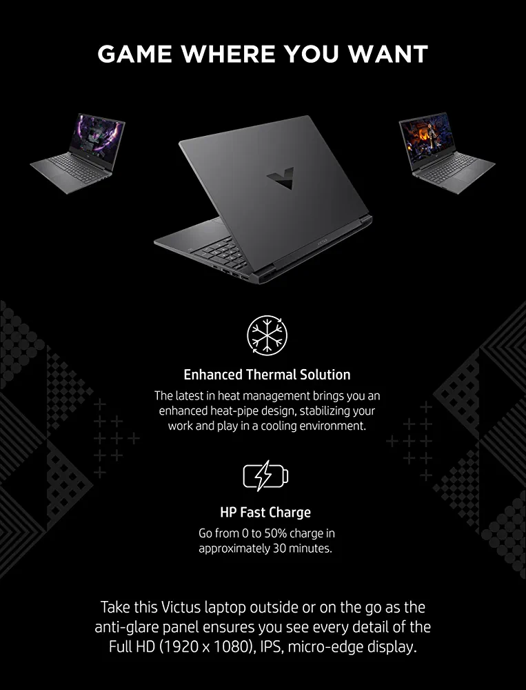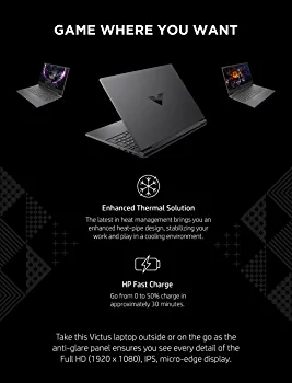 Introducing the HP Victus 15 Gaming Laptop, the ultimate gaming machine for serious gamers. With its powerful NVIDIA GeForce RTX 3050 graphics card and 12th Gen Intel Core i5-12500H processor, this laptop delivers lightning-fast performance and stunning visuals that will take your gaming experience to the next level. The 8 GB RAM and 512 GB SSD provide ample storage space for all your games, files, and media, while the Full HD display ensures crystal-clear visuals and vibrant colors. The laptop comes pre-installed with Windows 11 Home, the latest operating system from Microsoft, and features a backlit keyboard for easy typing in low-light conditions. The enhanced thermals ensure that the laptop stays cool even during intense gaming sessions, so you can play for hours without any interruptions. With its sleek design and powerful performance, the HP Victus 15 Gaming Laptop is the perfect choice for gamers who demand the best.