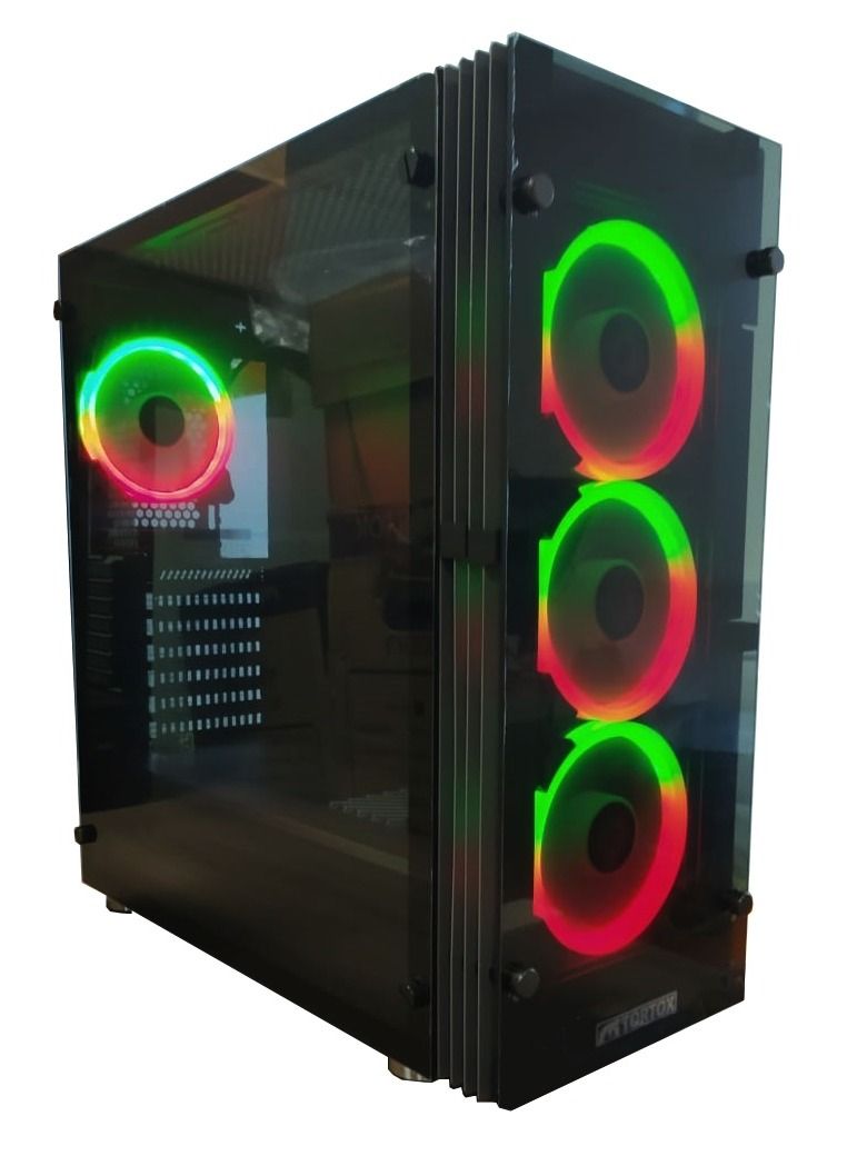 Introducing the Tortox Shadow Aura Double Tempered Glass PC Gaming Case, the ultimate gaming case for serious gamers. This case is designed to provide the perfect combination of style and functionality, with its sleek and modern design that is sure to turn heads. The double tempered glass panels on the front and side of the case provide a clear view of your gaming rig, while the four RGB fans add a stunning visual effect that will take your gaming experience to the next level.