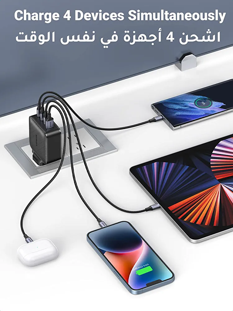 | nameOriginal | UGREEN 4 Ports USB C GaN Charger Plug Type C PD 65W QC 3.0 Fast Wall Mains Power Delivery Adapter for Laptops, MacBook Pro/Air, Steam Deck, iPad, iPhone,Samsung, Huawei, Oneplus, Xiaomi, Dell, Lenovo |