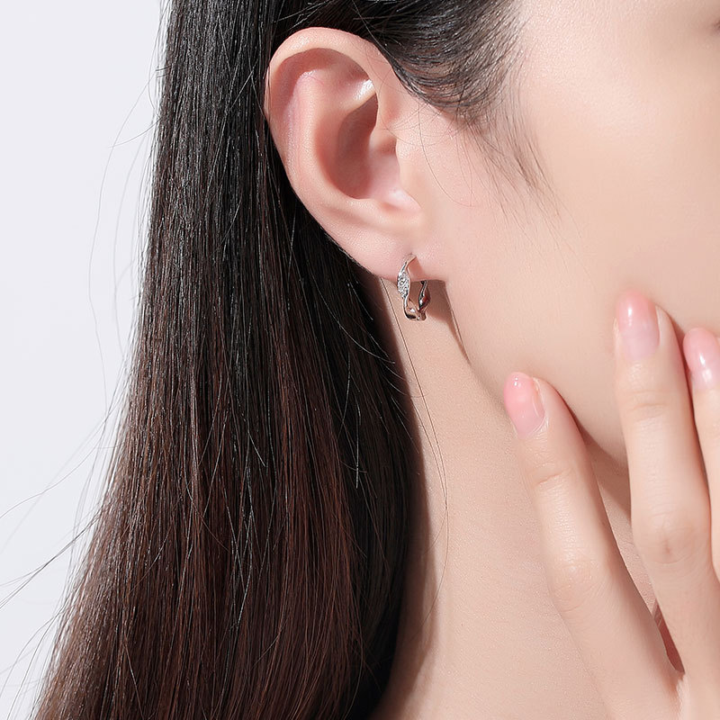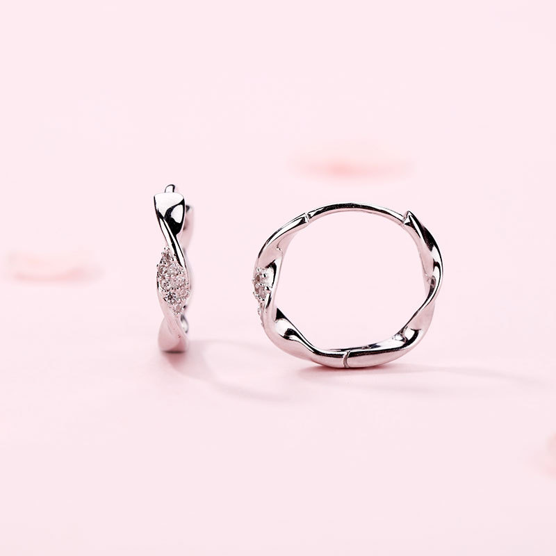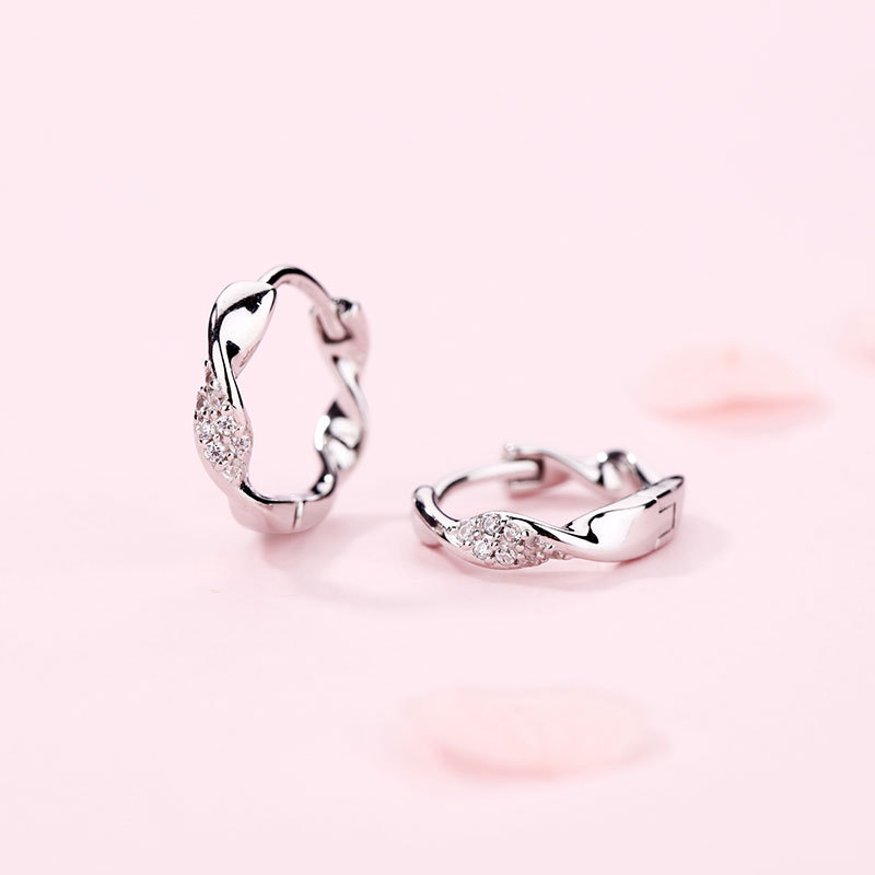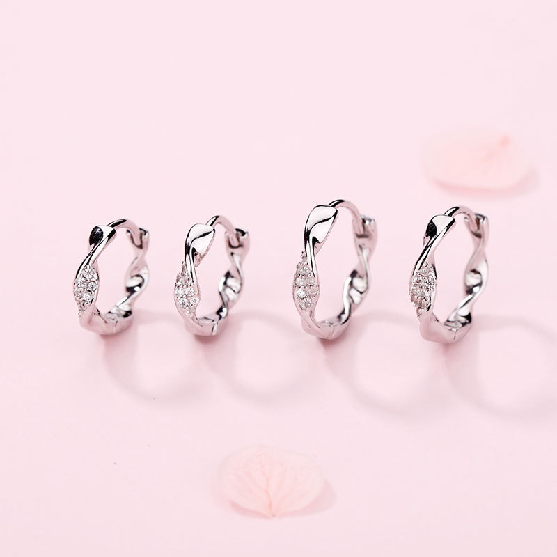 Ganjia S999 pure silver twist micro inlaid zircon ear buckle ear piercing temperament fashion simple ear ring earrings new women
