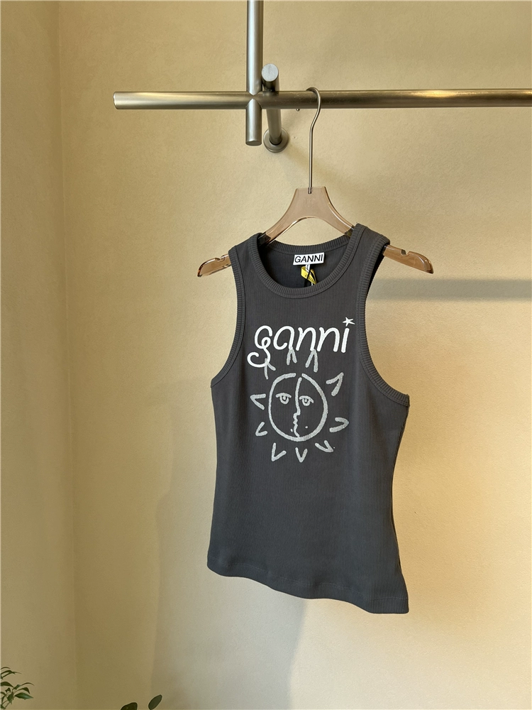 | nameOriginal | Ganni spring and summer sun pattern print ribbed vest |