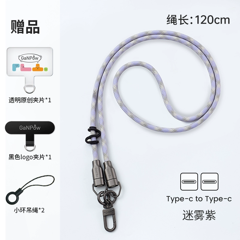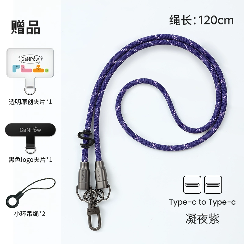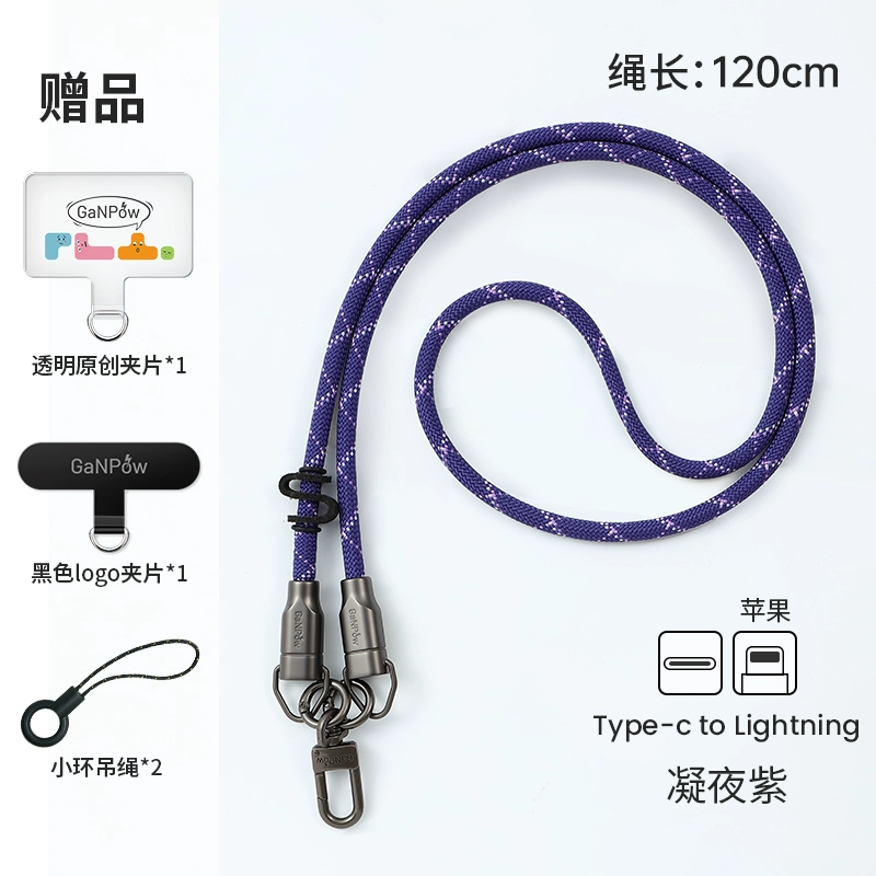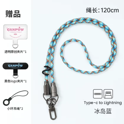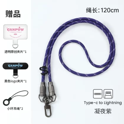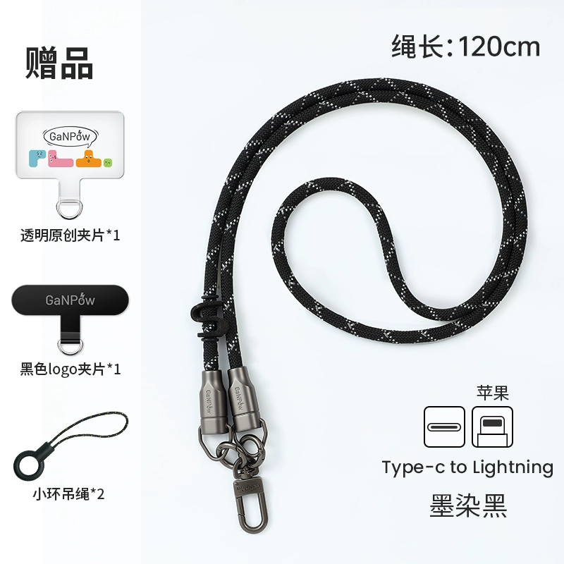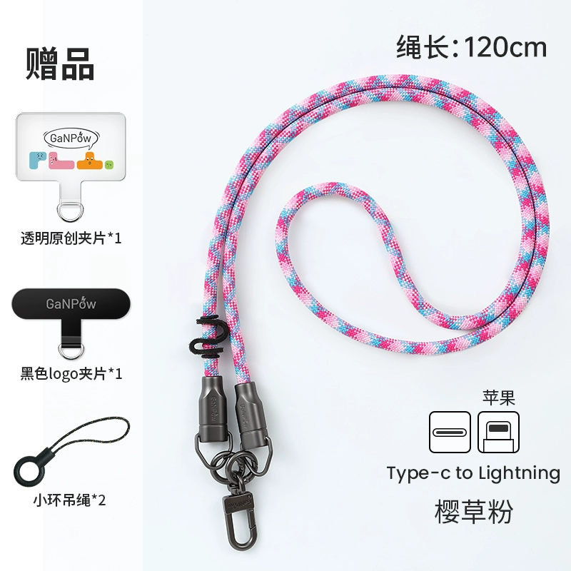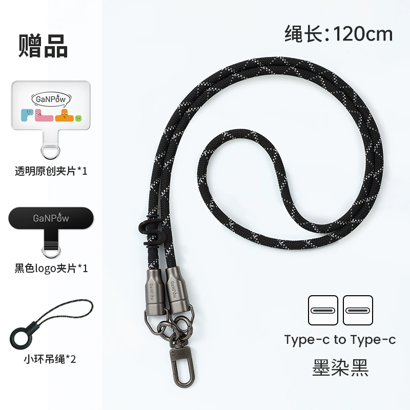 GaNPow original mobile phone lanyard data cable two-in-one multi-function TYPE-C Apple charging cable mobile phone crossbody lanyard women high-end outdoor anti-loss mobile phone rope crossbody can carry mobile phone lanyard