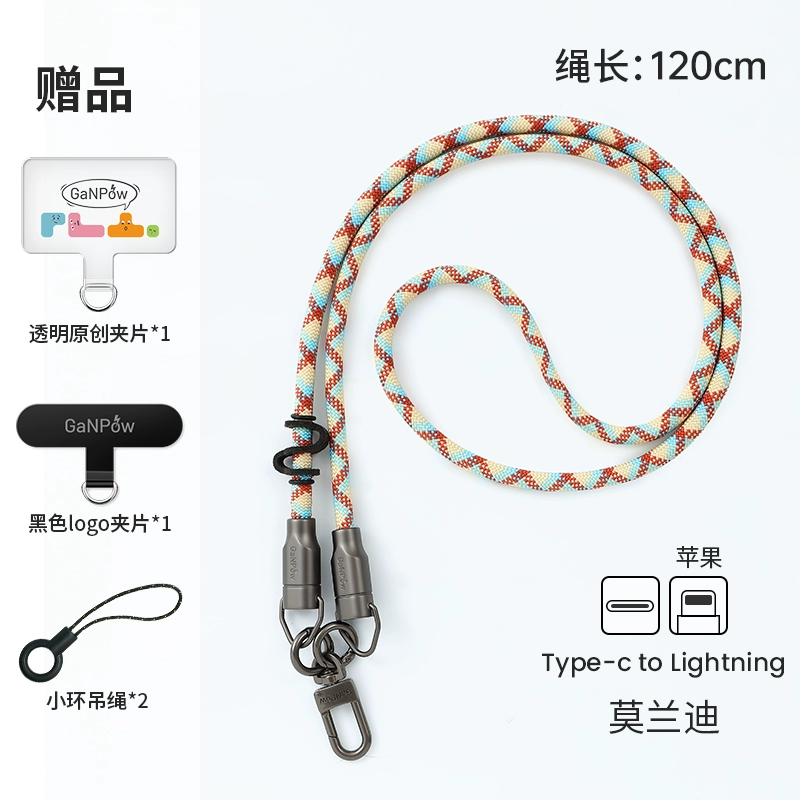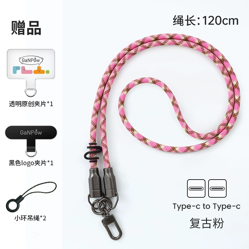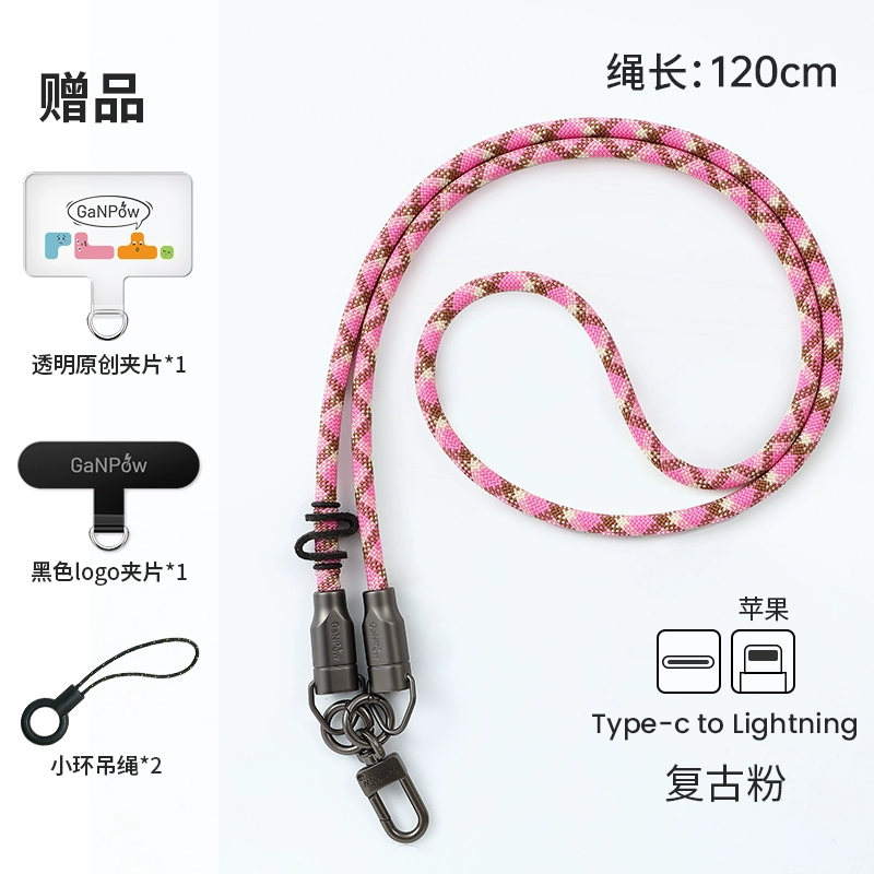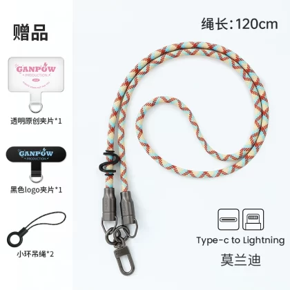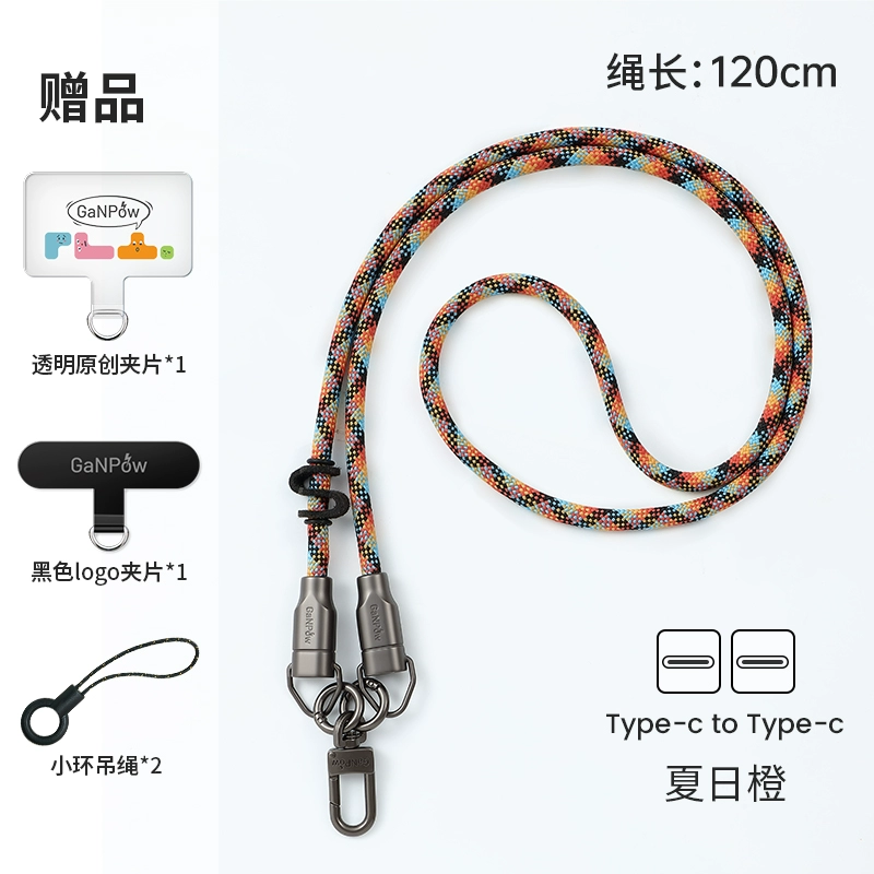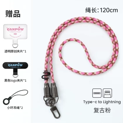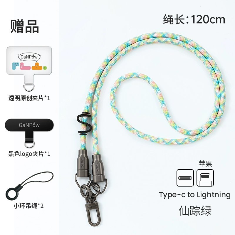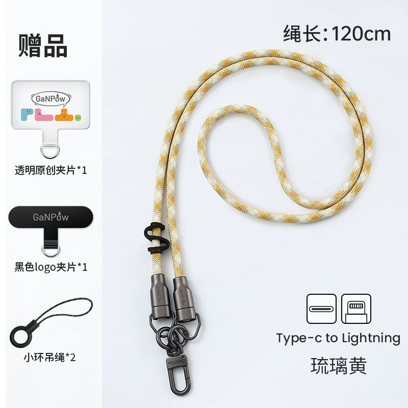GaNPow original mobile phone lanyard data cable two-in-one multi-function TYPE-C Apple charging cable mobile phone crossbody lanyard women high-end outdoor anti-loss mobile phone rope crossbody can carry mobile phone lanyard