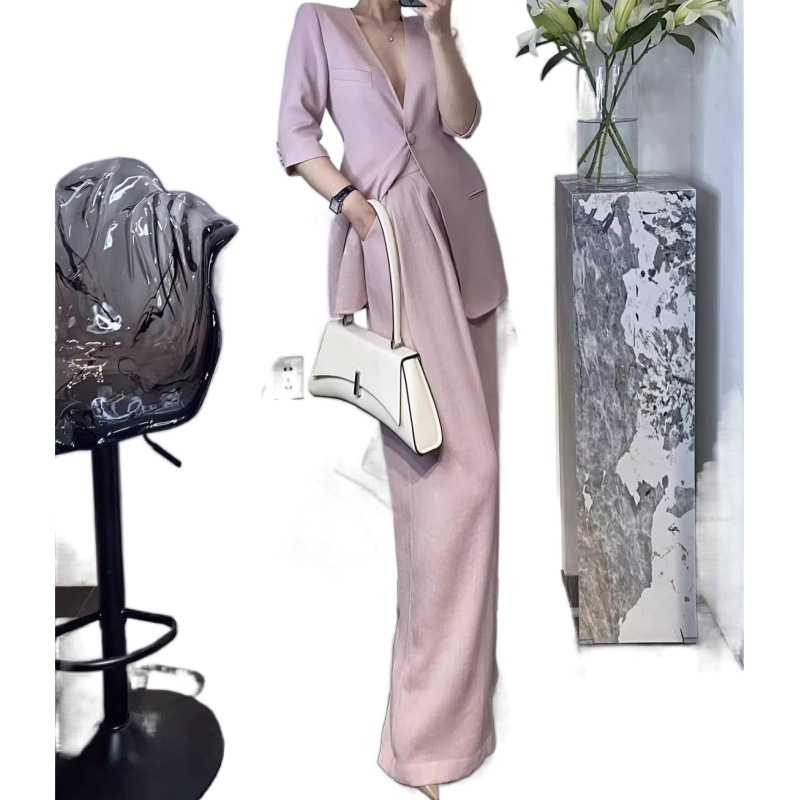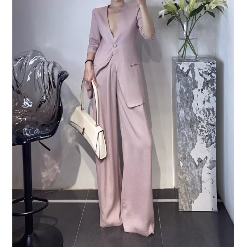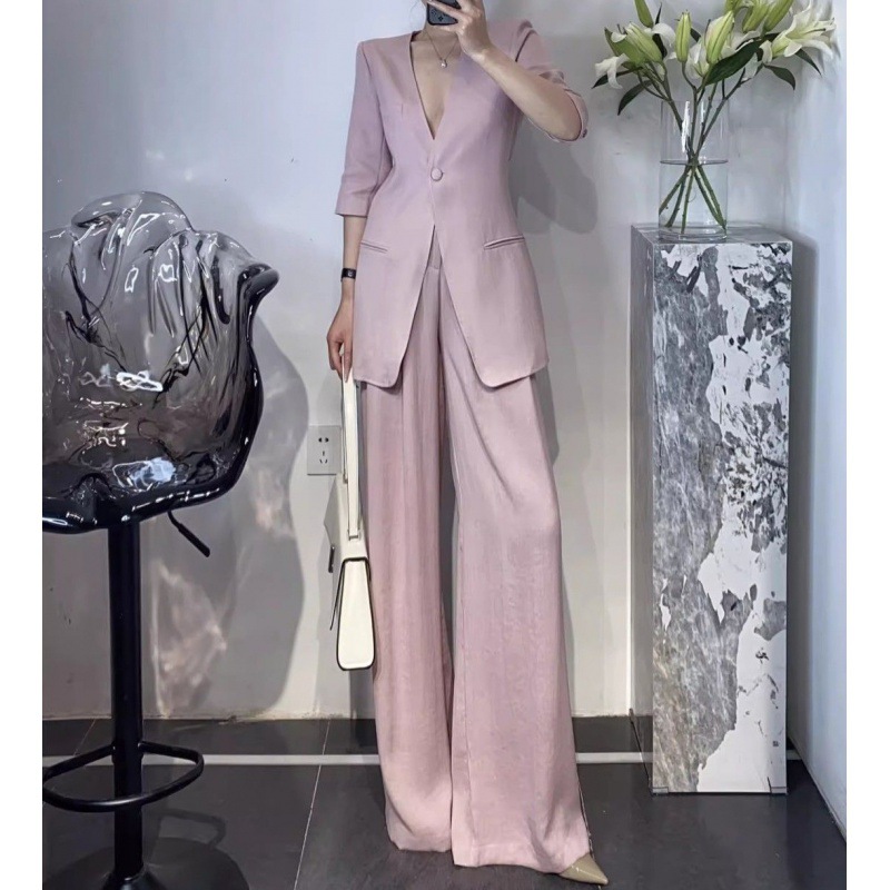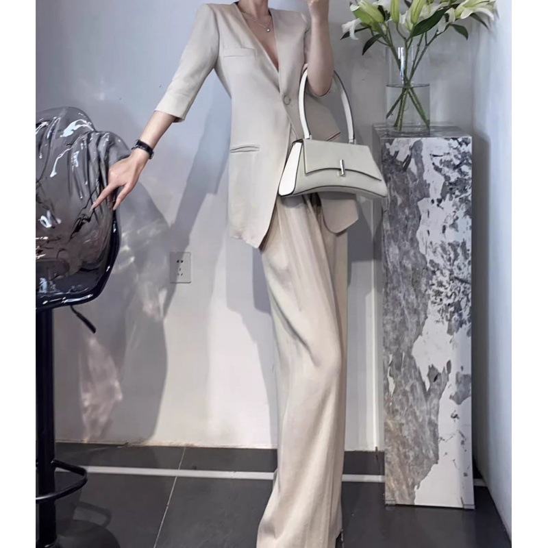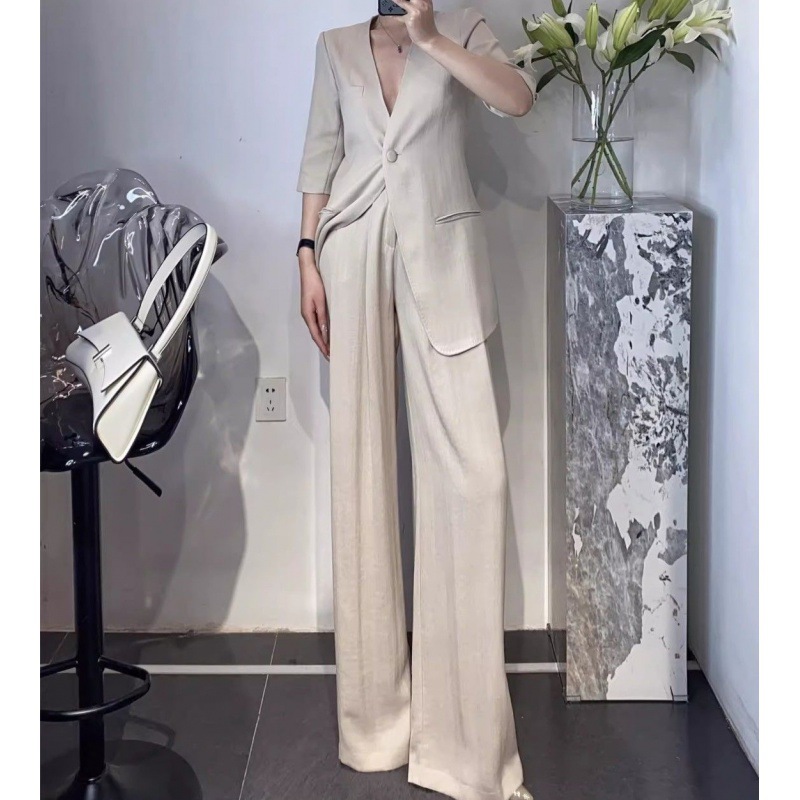 Gao Class Business Wear 2024 Summer New Commuter Design OL Loose Suit Wide Leg Pants Suit Two-Piece Suit Women