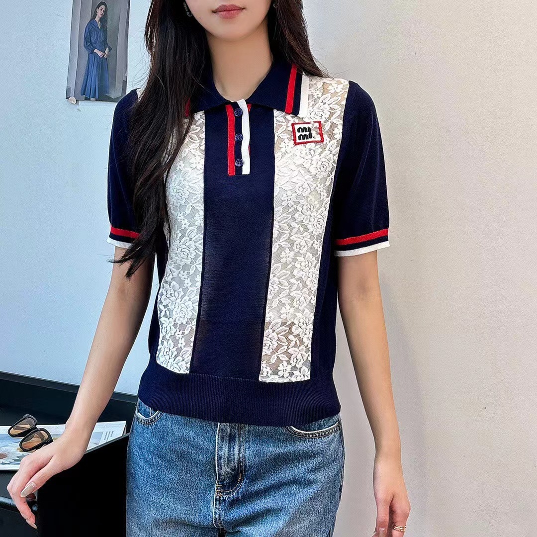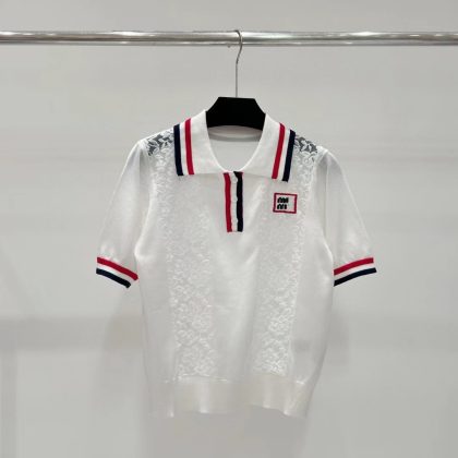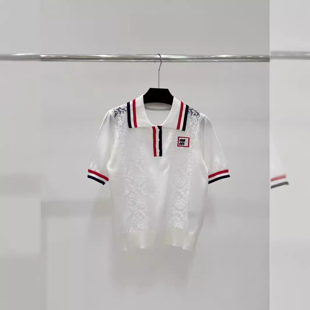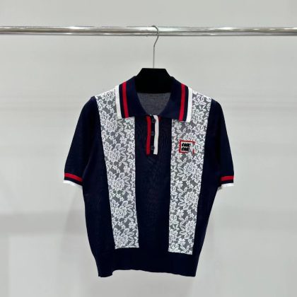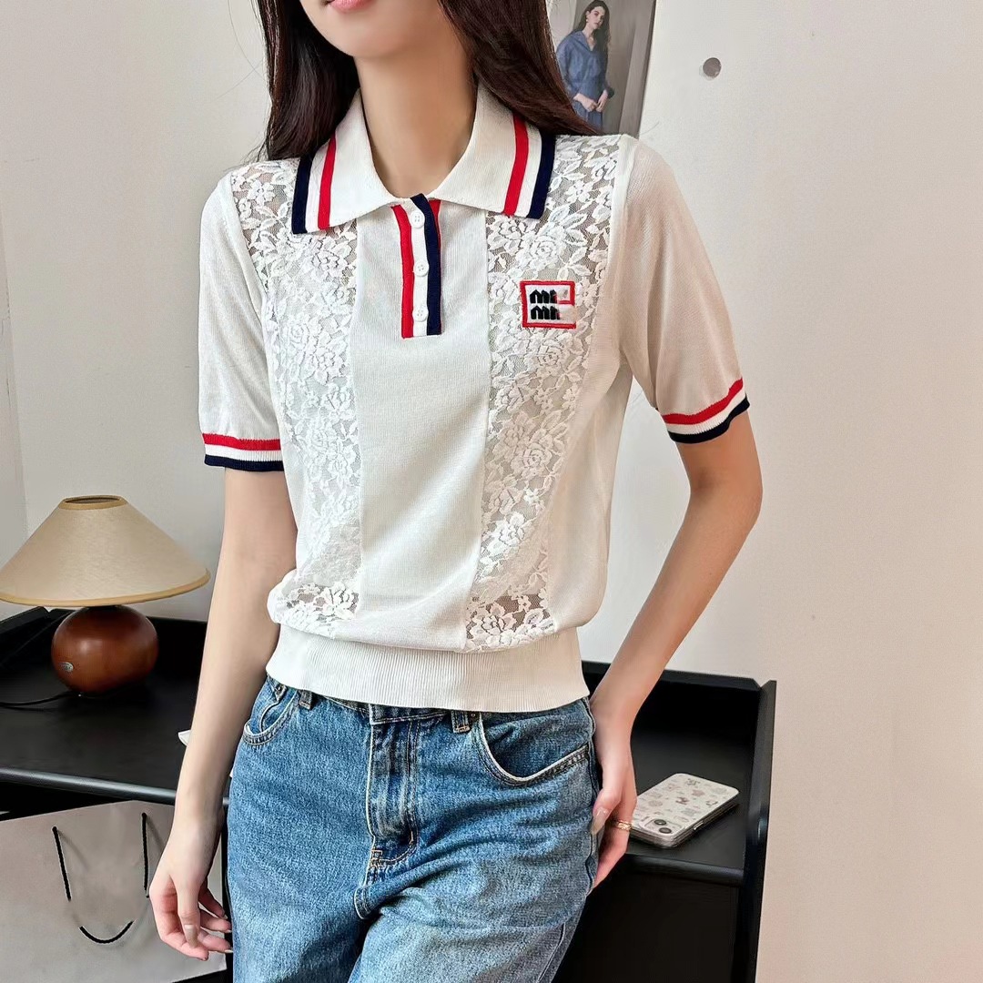 | nameOriginal | Gao Ding Meow Light Luxury Fashionable Lace Jacquard Hollow Flower Patchwork Letter Lel Knit Short-sleeved Top |