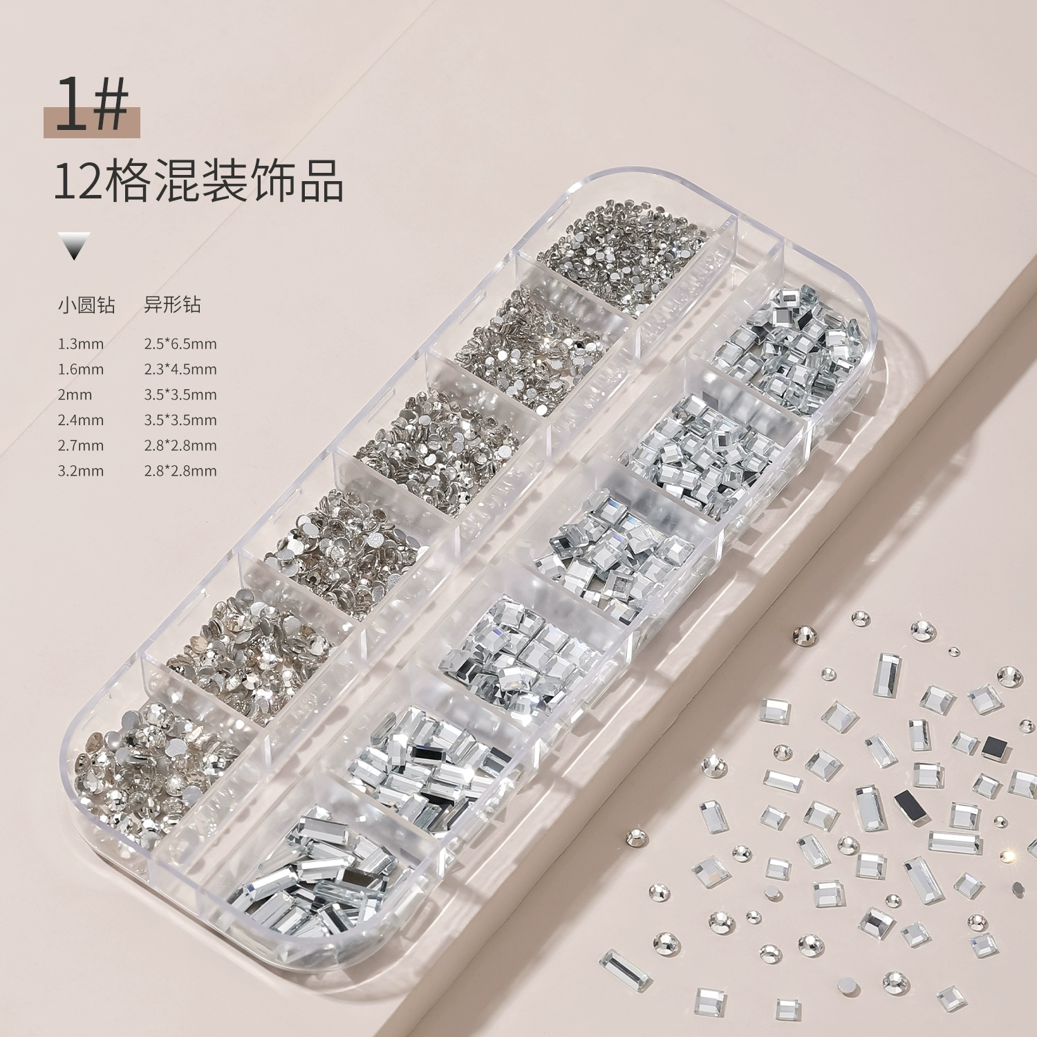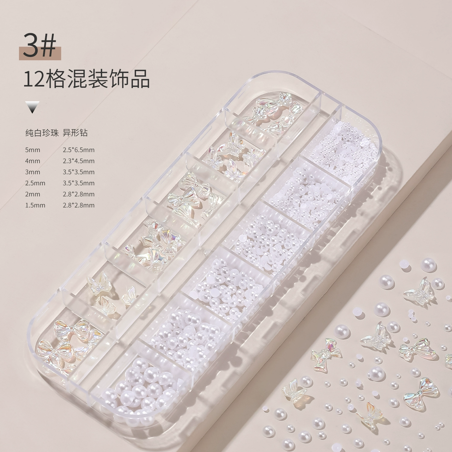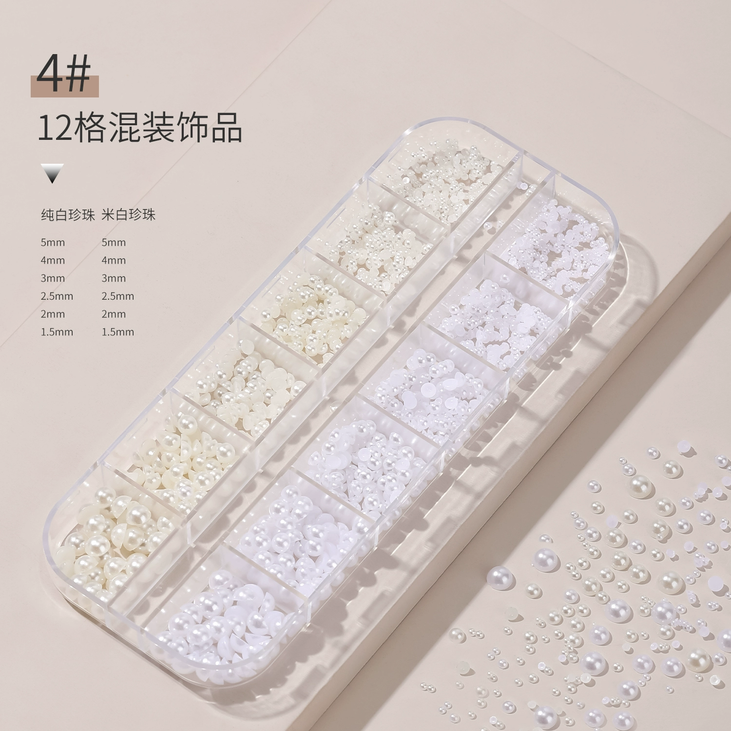 gaoy Goya 12-grid hot style mixed nail art jewelry semi-circle super flash small water diamond nail pearl accessories