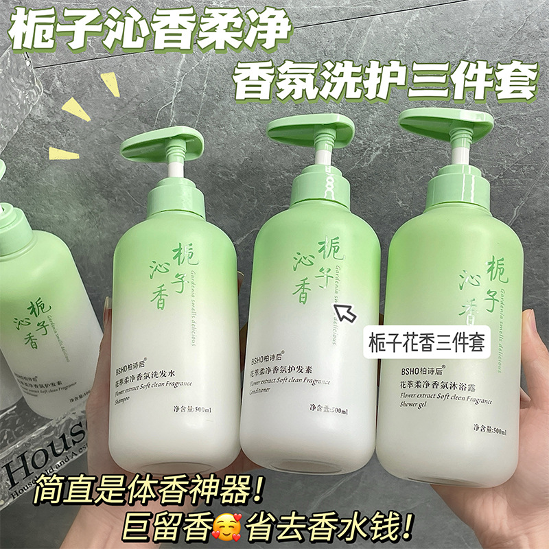 | nameOriginal | Gardenia flower extract fragrance shampoo hair conditioner lasting fragrance moisturizing fluffy anti-dandruff anti-itching three-piece set |