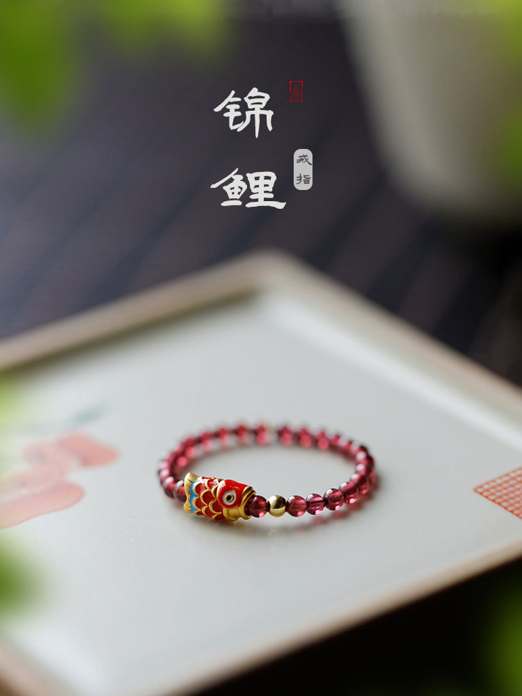 | nameOriginal | Garnet ring women's index finger running beads 999 pure gold koi ring tail ring niche design gift |