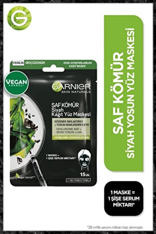 Garnier Black Seaweed Pore Firming Paper Face Mask applies 1 week care at a time with its dermatologically tested concentrate formula. LHA in its formula offers effective solutions with extracts of hyaluronic acid and black algae. Developed specifically for enlarged pores, the product deeply purifies the face and provides effective cleaning of dirt accumulated in the pore. It applies moisture therapy to the face through cleaned pores and helps to shrink the expanding pores with its firming effect. At first 15 minutes of use, it offers you a face posture that is free, matted and moisturized without greasing with detox effect. When used regularly every week, it allows you to have healthier clear and balanced skin at the end of the 3rd week. You can feel this effect with the 3 products included in the set. Place the product presented ready to be applied in the package with the blue protection tape on your face with the outside. Then gently apply pressure through the mask, completely fit the product on the skin and remove the protection tape. After waiting 15 minutes, remove the mask completely and massage the remaining formula into the skin. At the end of these steps, you will instantly feel the Detox effect created by Garnier Black Moss Pore Firming Paper Face Mask!