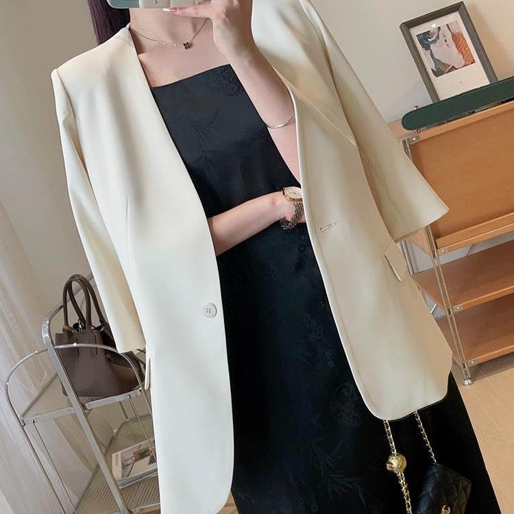 | nameOriginal | Gas field WU enemy! High-end commuter vinegar fat draping one button sun protection V-neck half sleeve thin suit jacket for women Summer |