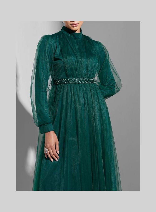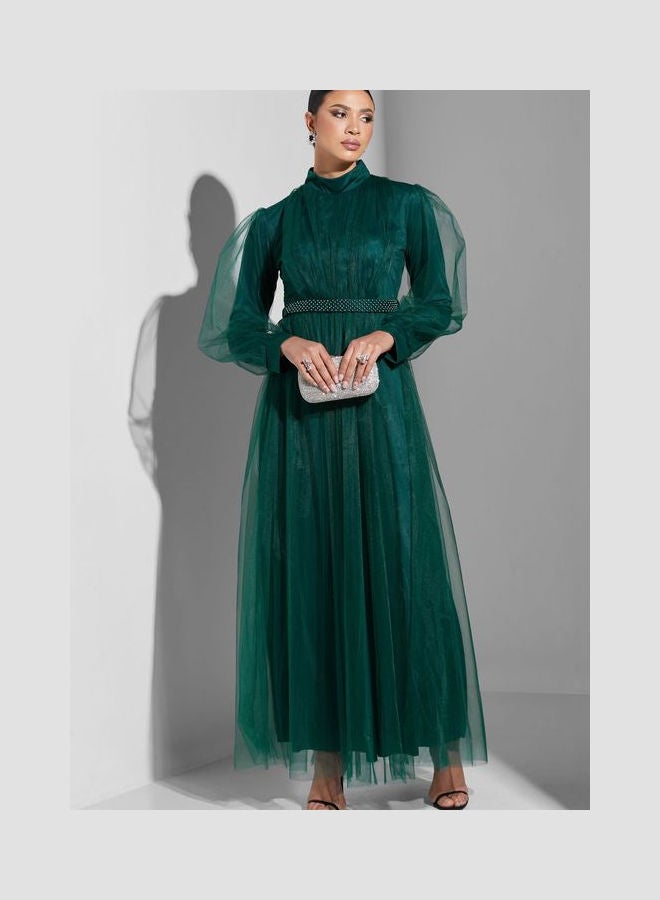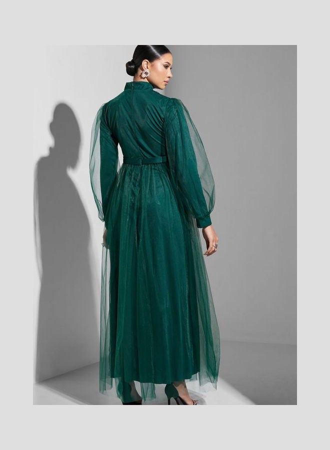 | nameOriginal | Gathered Detail Tulle High Neck Dress For Women Green |