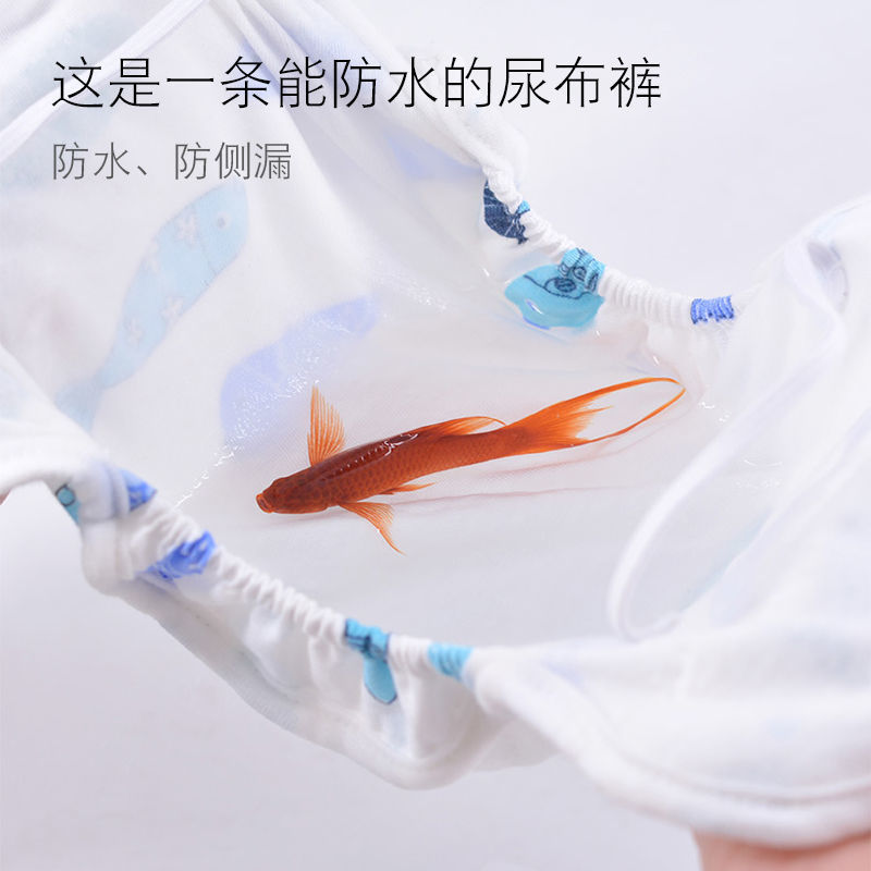 Gauze diaper one-piece Baby pants washable cotton breathable anti-side leakage baby training pants fixed diaper ring meson