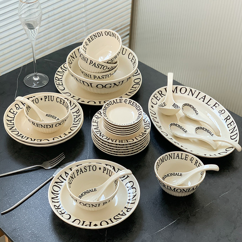 GD53 French ins cream style tableware ceramic household bowl dish suit high color value Bowl plate dish steak plate fish