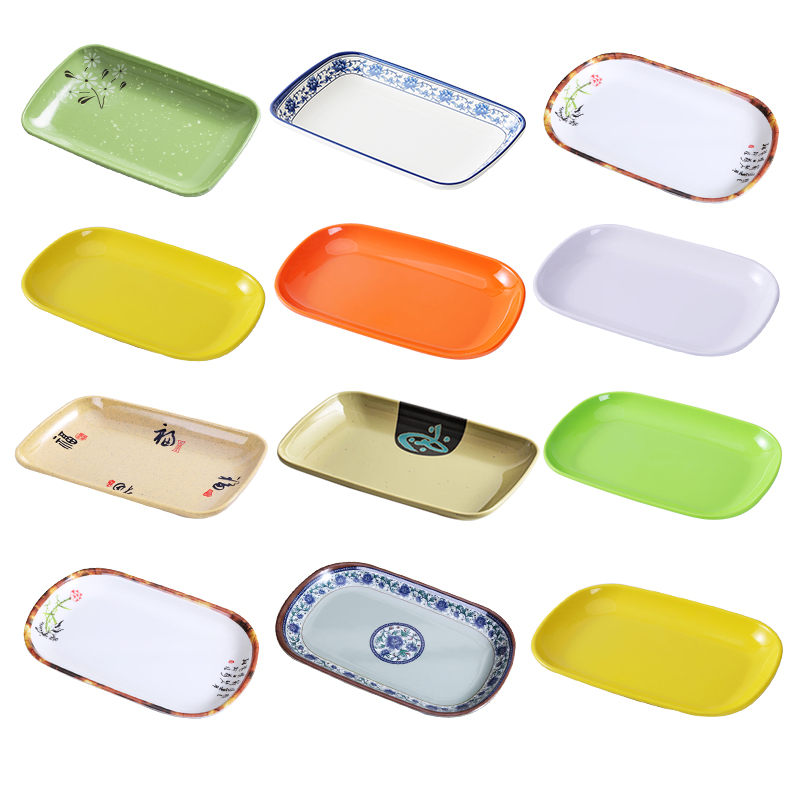 GD53 imitation porcelain melamine commercial breakfast hot pot barbecue shop sausage plate plastic plate rectangular dish dish