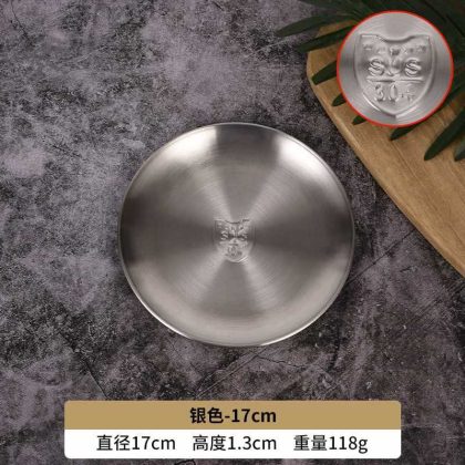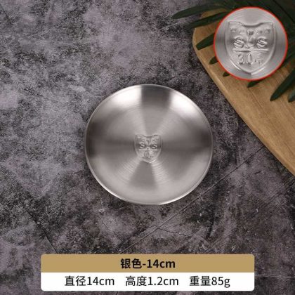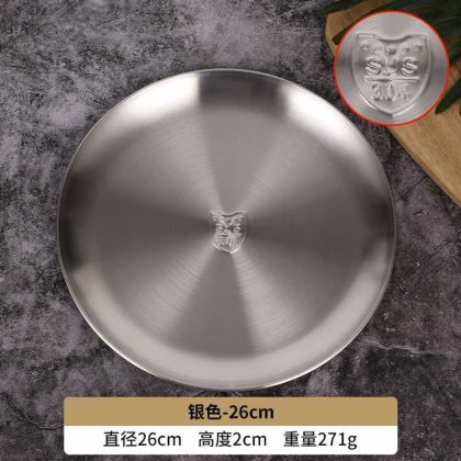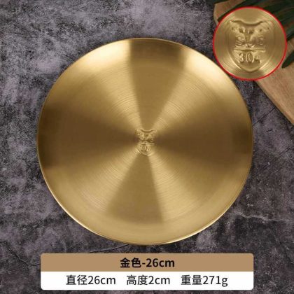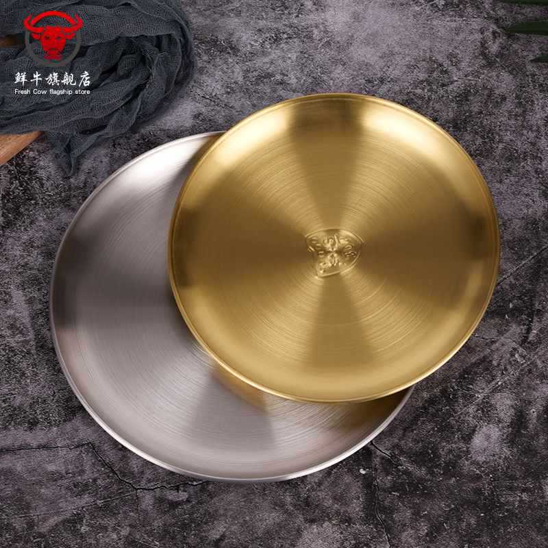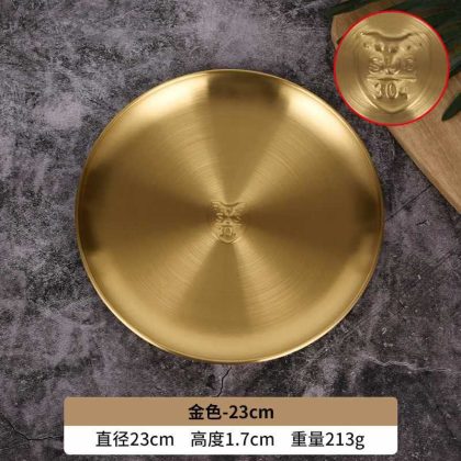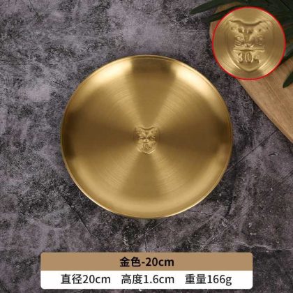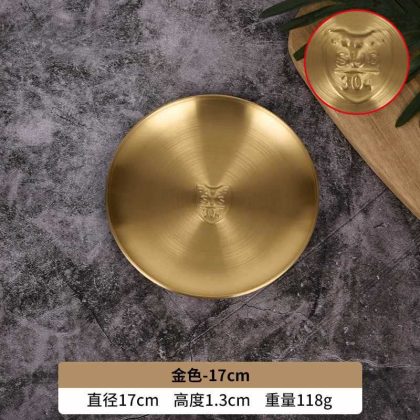 GD53 Korean 304 stainless steel disc bone dish plate golden dessert tableware barbecue plate camping plate cake plate water