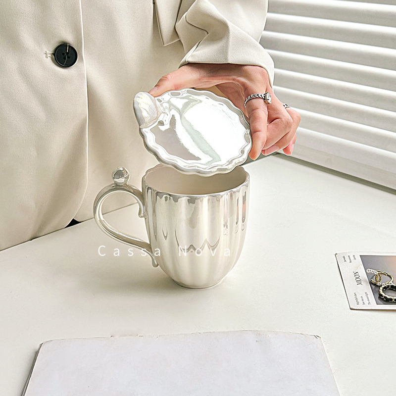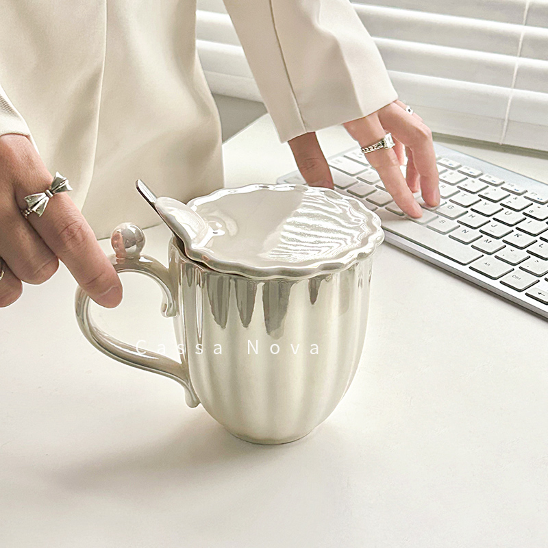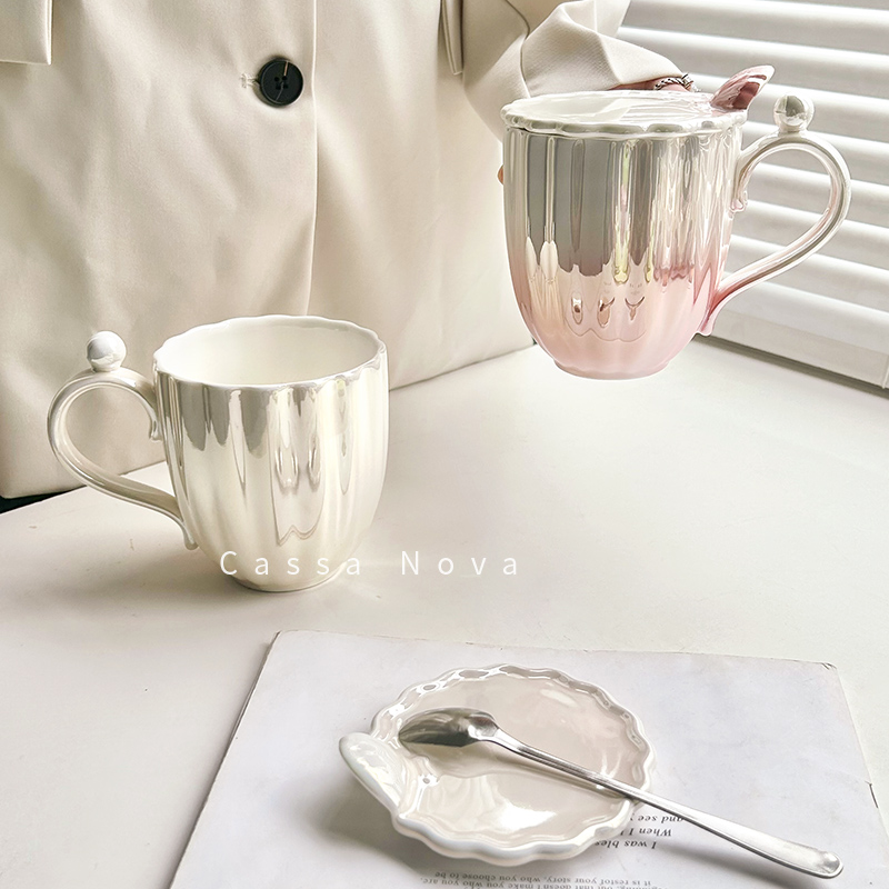 | nameOriginal | GD53 Pearl mug with lid spoon girls' household ceramic water cup office high-looking drinking cup coffee |