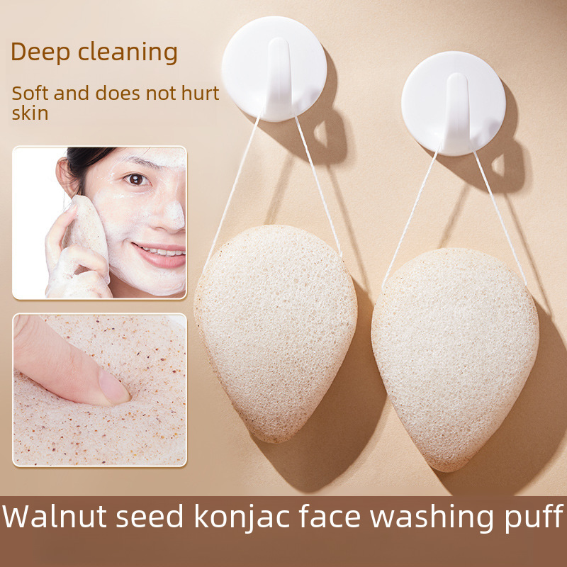 GECOMO walnut seed konjac face washing puff deep cleansing Gentle Exfoliating Facial Cleansing artifact natural facial cleansing puff