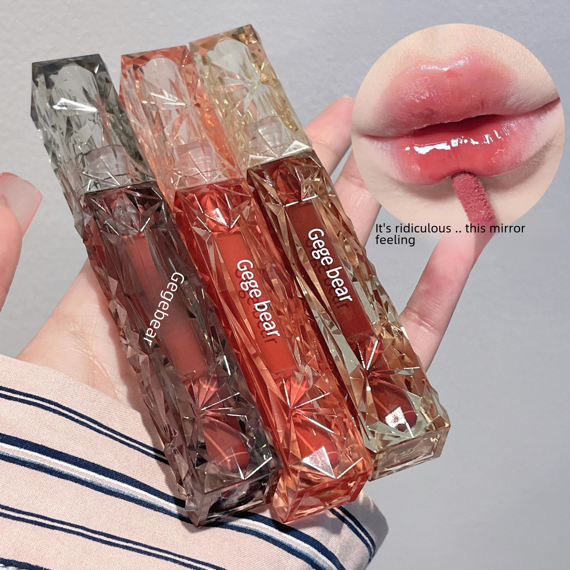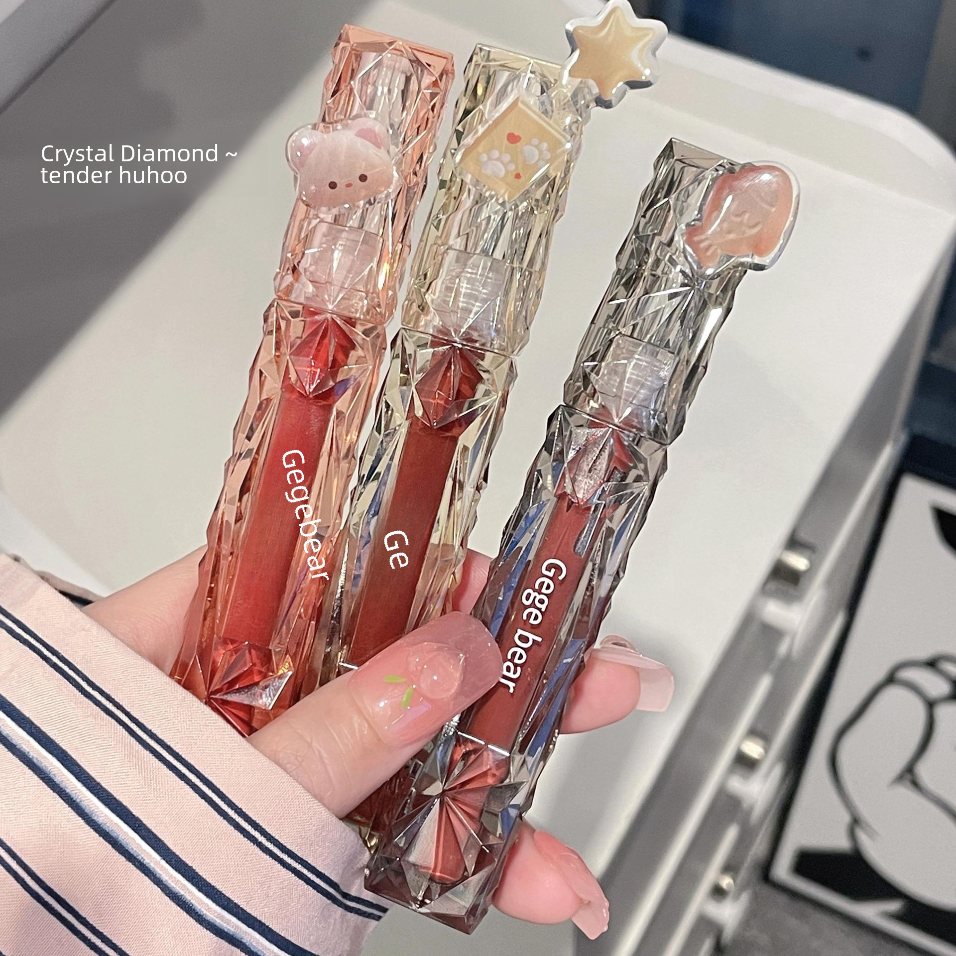 | nameOriginal | Gege bear Gogo bear Crystal Diamond Mirror Lip Glaze Moisturizing Non-stick Cup Plain White Lipstick |