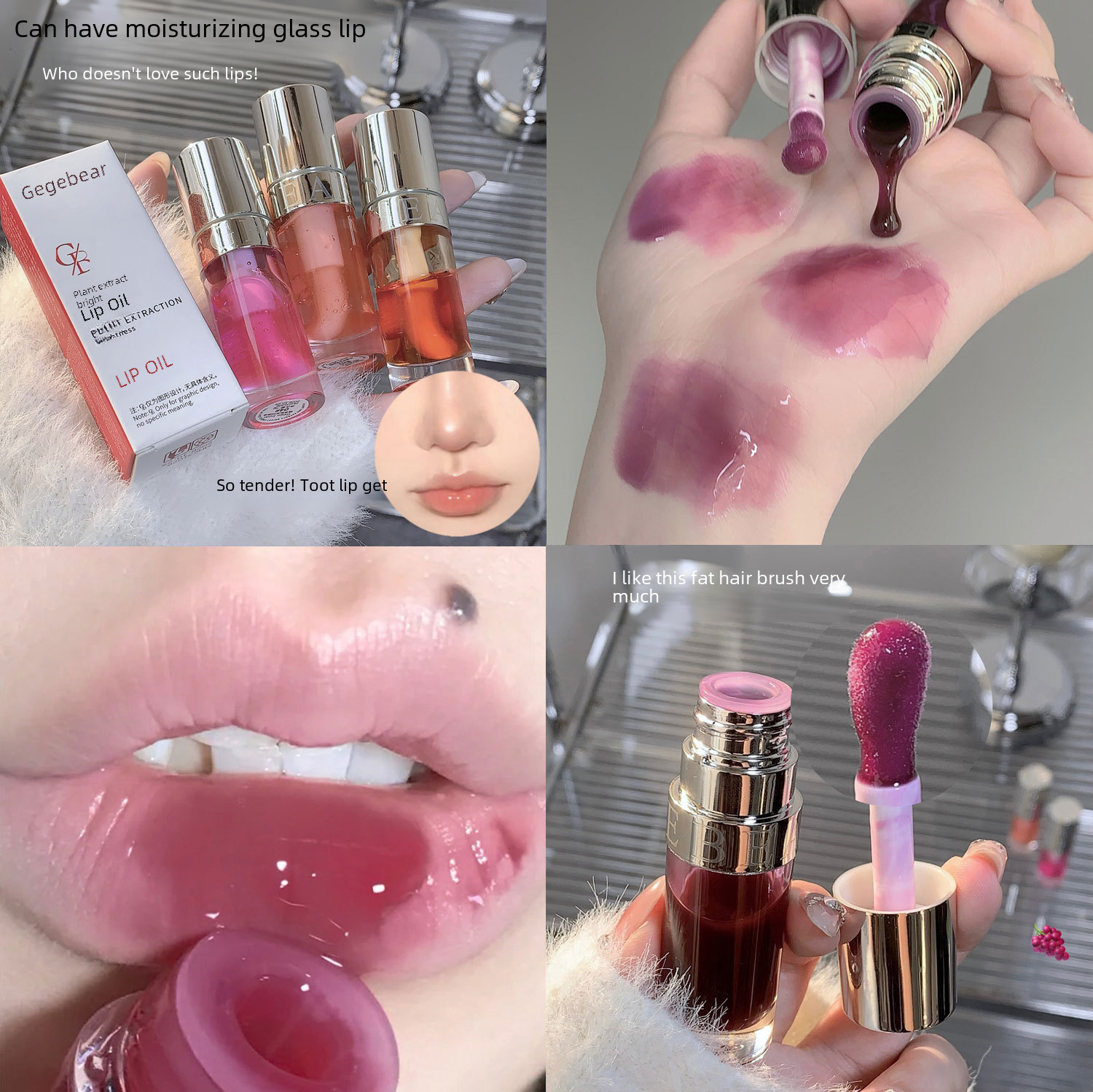 | nameOriginal | Gege bear plant extract Brightening Lip Oil moisturizing glass lip colored lip honey dry lip fade lip lines |