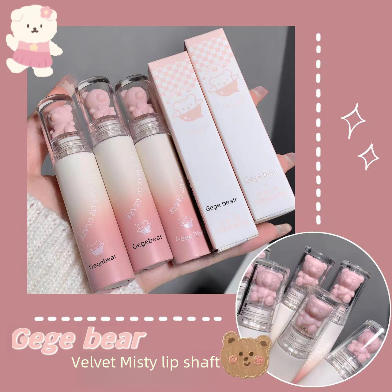 | nameOriginal | Gegebear Velvet Mist Lip Glaze Velvet Mist Matte Easy to Color Lasting White Lip Mud Lipstick |