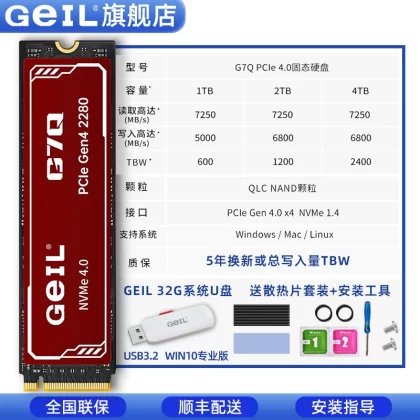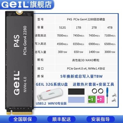 | nameOriginal | GeIL Jinbang m2 solid state drive P4A2t4t1tb desktop computer storage PCIe4.0 notebook gaming SSD |