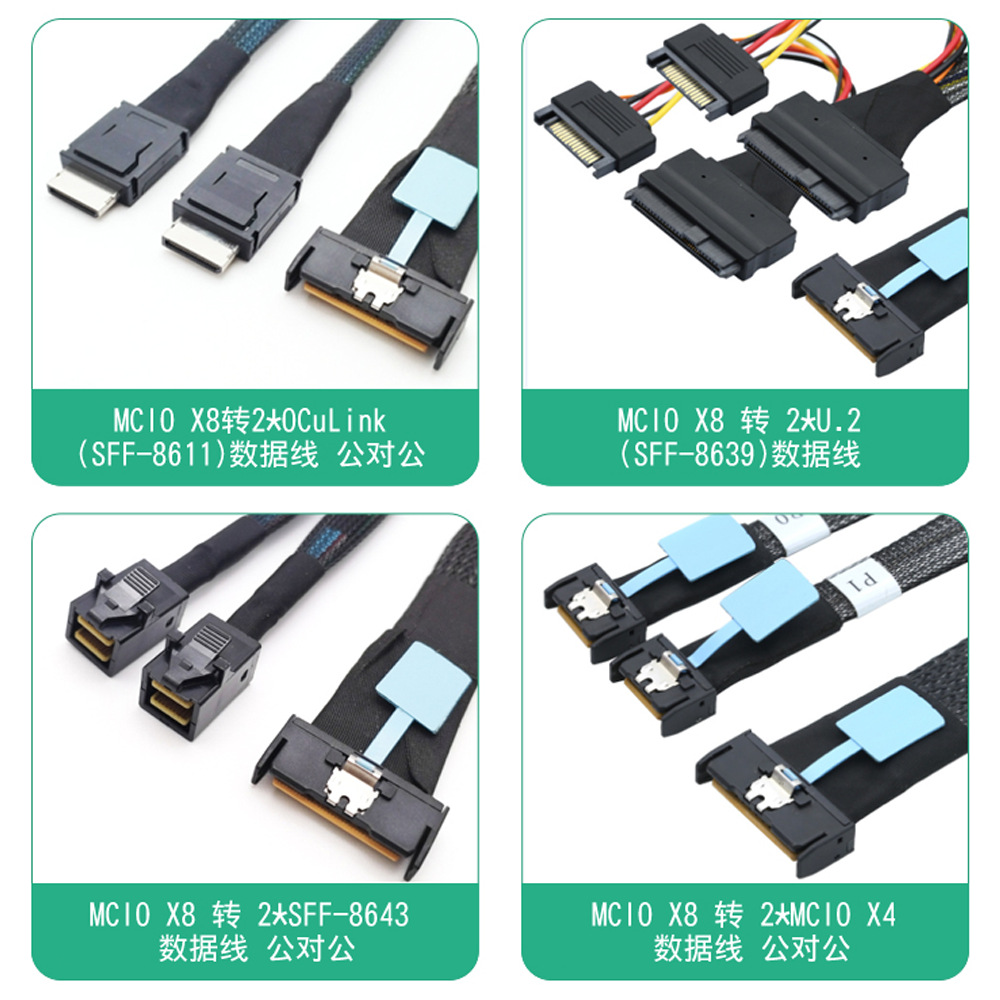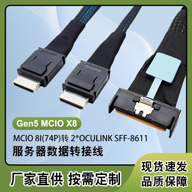 Gen5 MCI0 X8 server MCIO 8I(74P) to 2Oculink SFF-8611 data patch cord