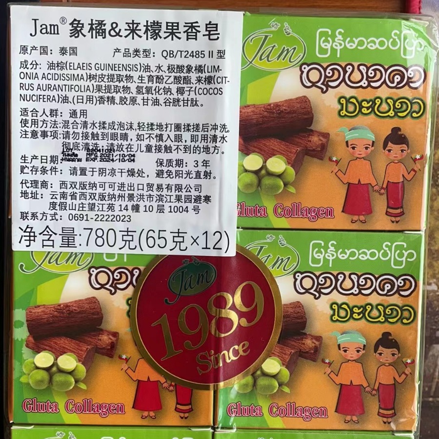[General Trade] Thailand Jam rice soap collagen mangosteen turmeric soap cleaning wedding gift 65g