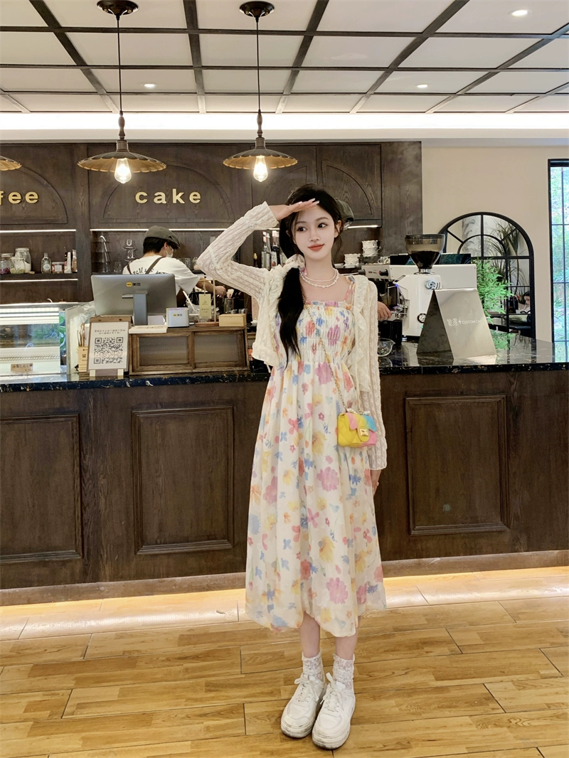 | nameOriginal | Gentle and fat French sunscreen cardigan paired with a suspender skirt |