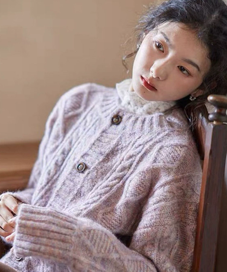 Gentle and lazy style sweater jacket and soft waxy knitted cardigan