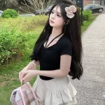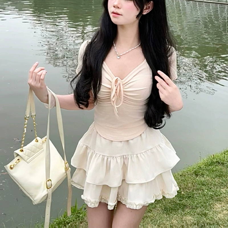 | nameOriginal | Gentle and pure sexy hottie with low collar, short sleeves, slim fit and drawstring |