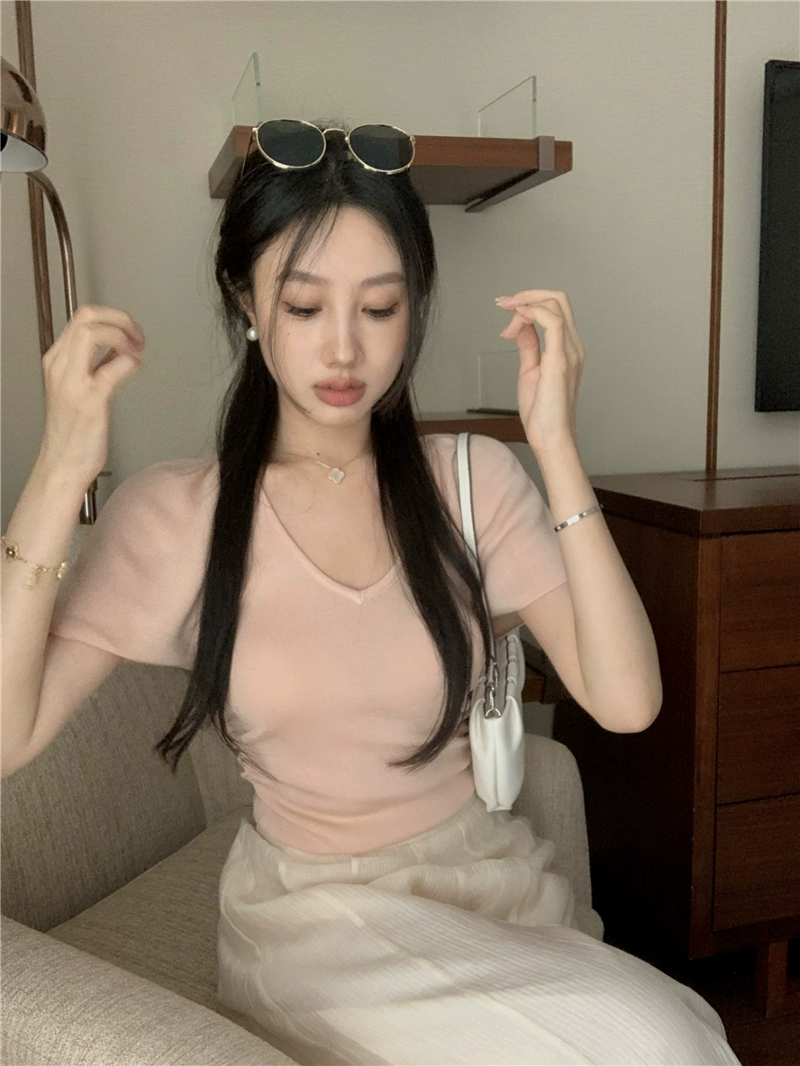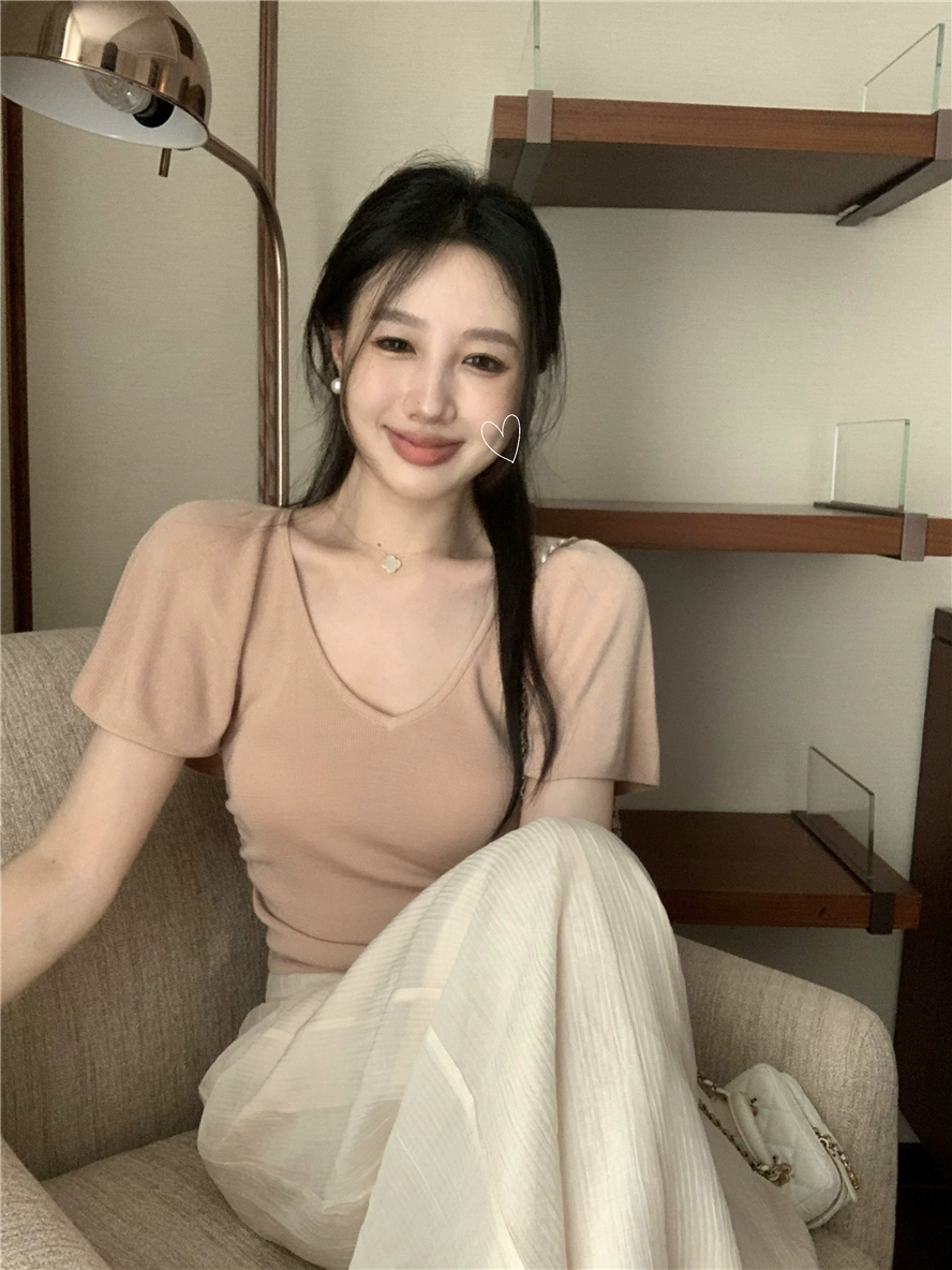 | nameOriginal | Gentle butterfly sleeve V-neck short knitted suit silk cotton |