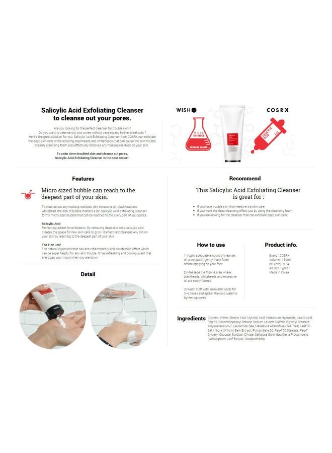 The 150ml bottle is the perfect size for your daily skincare routine and will last you for several weeks. With regular use, you can expect to see a noticeable improvement in the overall appearance and texture of your skin. Say goodbye to dull, tired-looking skin and hello to a brighter, more radiant complexion with the Salicylic Acid Daily Gentle Cleanser.