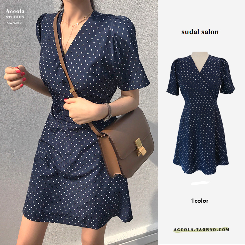 Gentle first love retro temperament polka dot floral dress