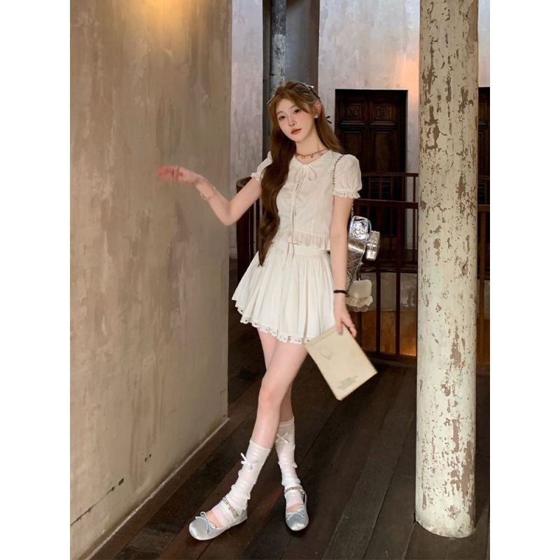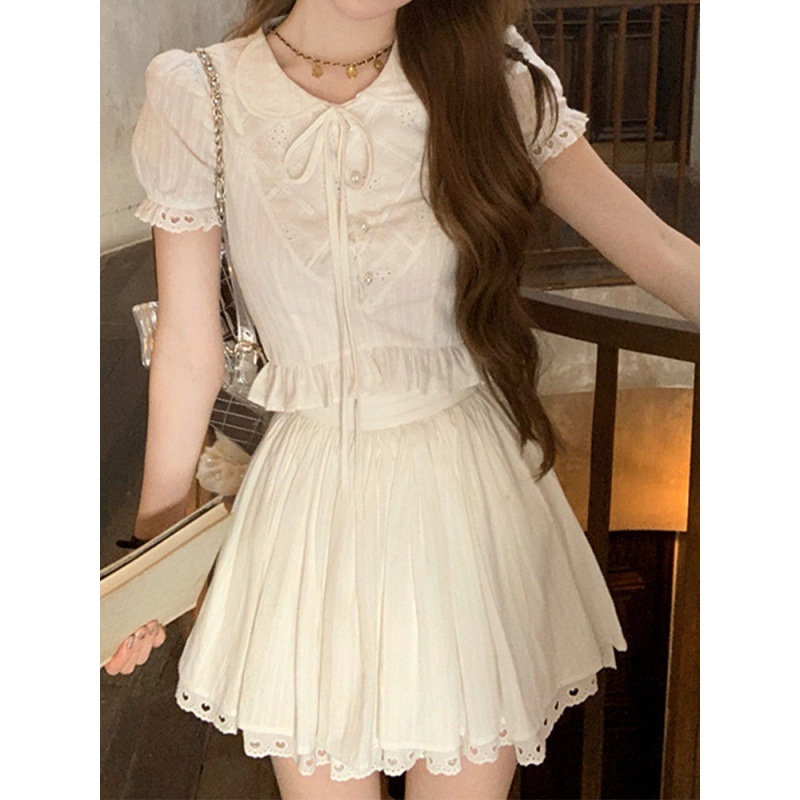 | nameOriginal | Gentle First Love White Skirt Bubble Sleeve Love Embroidered Shirt Women's Spring and Summer New Sweet Two-piece Suit for 2024 |
