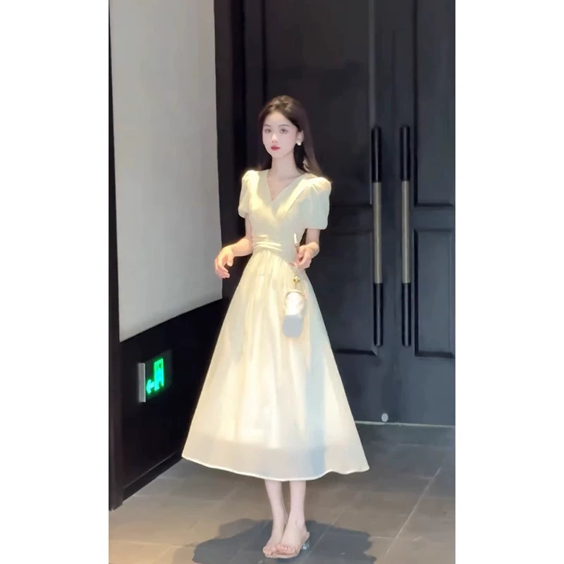 | nameOriginal | Gentle French v-neck puff sleeve summer dress |