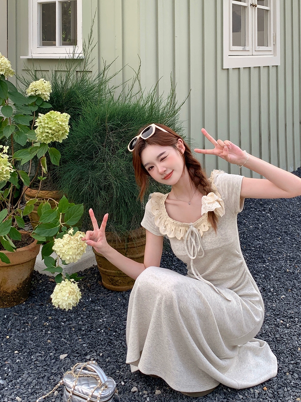 | nameOriginal | Gentle lace splicing summer short-sleeved top and skirt |