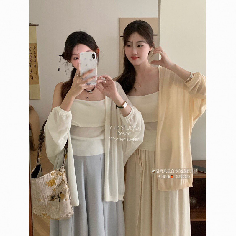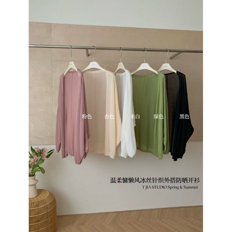 Gentle Lazy Style All-match Ice Silk Sun Protection Top Summer Long-sleeved Loose Outer-fit Knitted Cardigan Mid-length Shawl