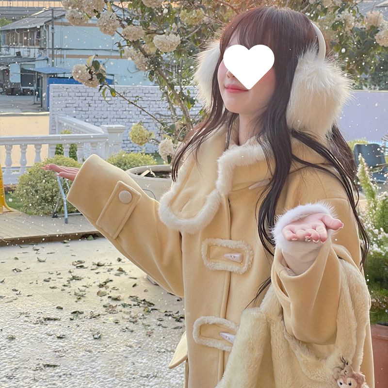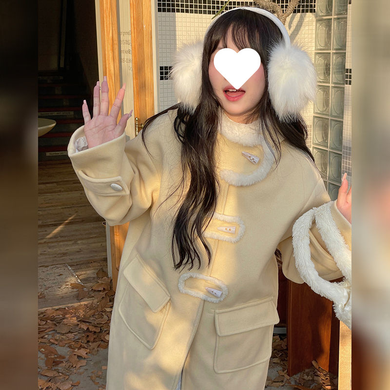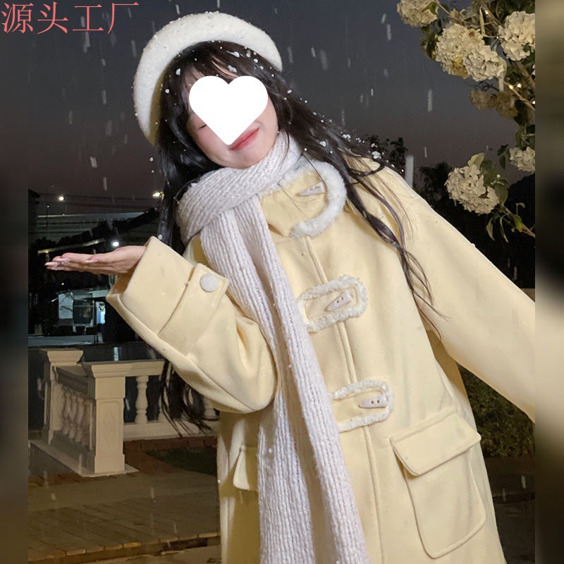 | nameOriginal | Gentle milk yellow long woolen coat for women 2024 autumn and winter New sweet age-reducing horn buckle woolen coat |