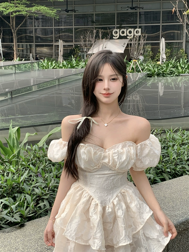 | nameOriginal | Gentle one-shoulder summer French cake skirt with short sleeves |
