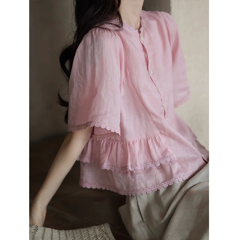 | nameOriginal | Gentle pink sweet lace age-reducing shirt short sleeves |