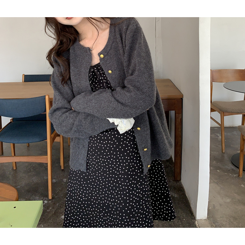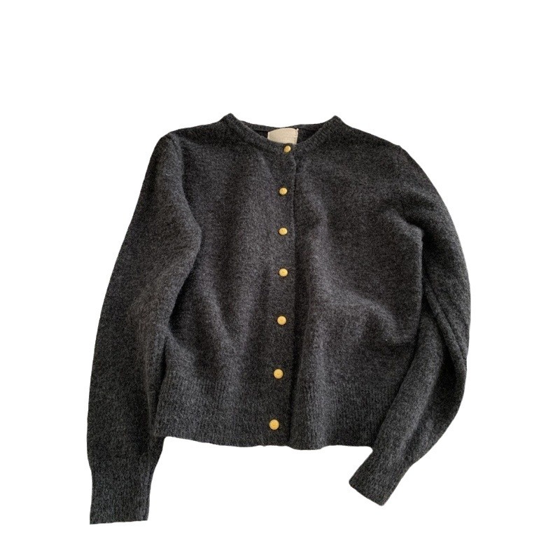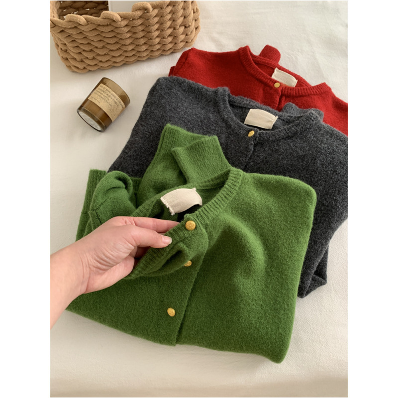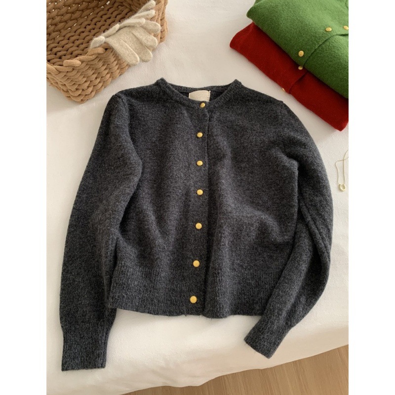 Gentle Retro Small Gold Button Round Neck Knitted Cardigan Women’s 2024 Autumn and Winter Loose Casual Basic All-match Sweater Jacket