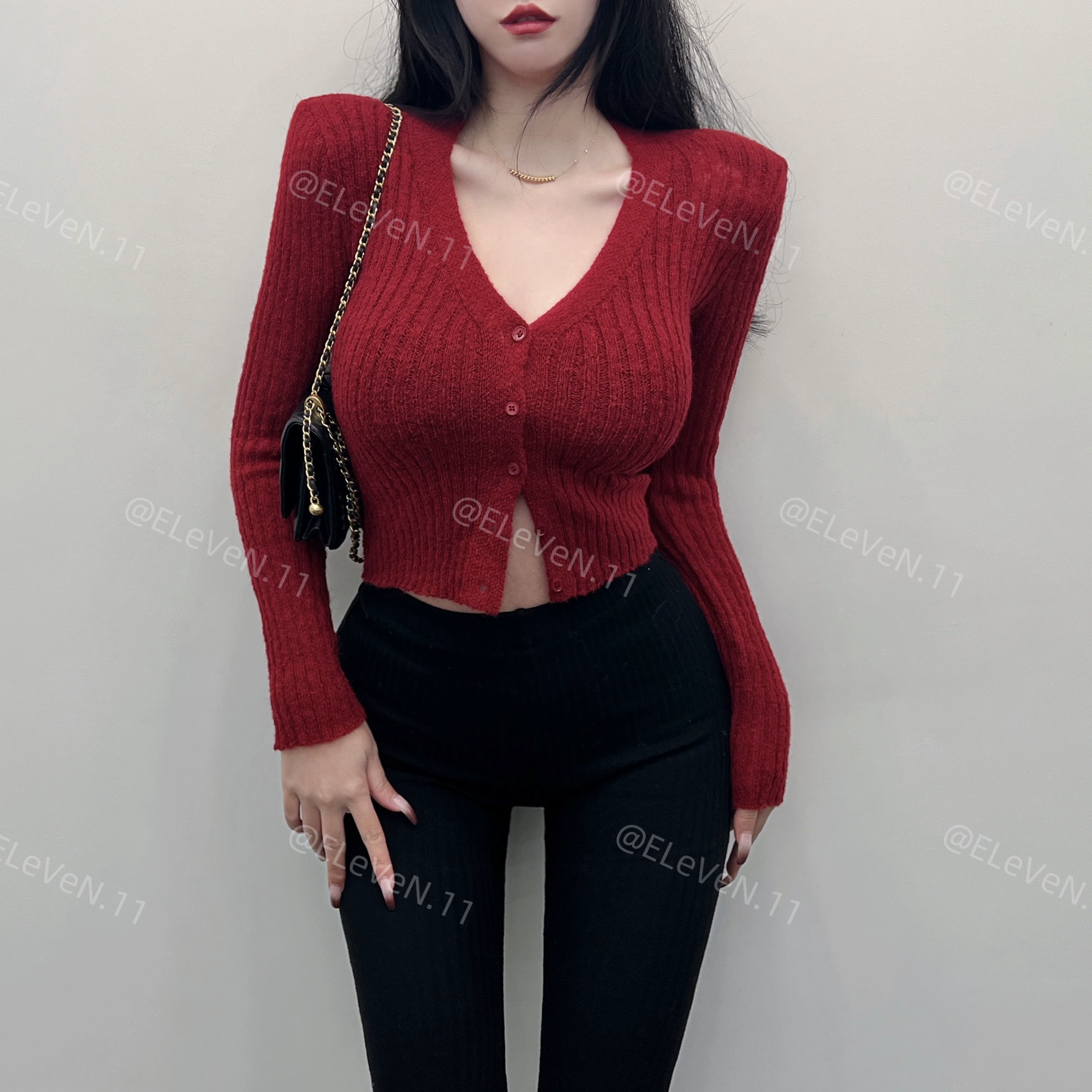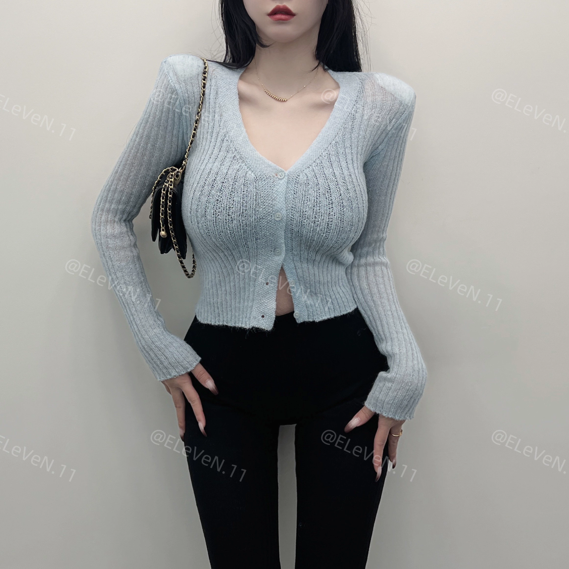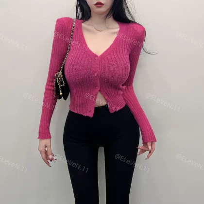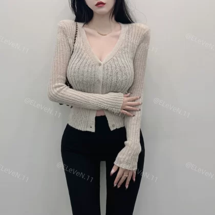 | nameOriginal | Gentle right-shoulder deep V figure-flattering single-breasted top |